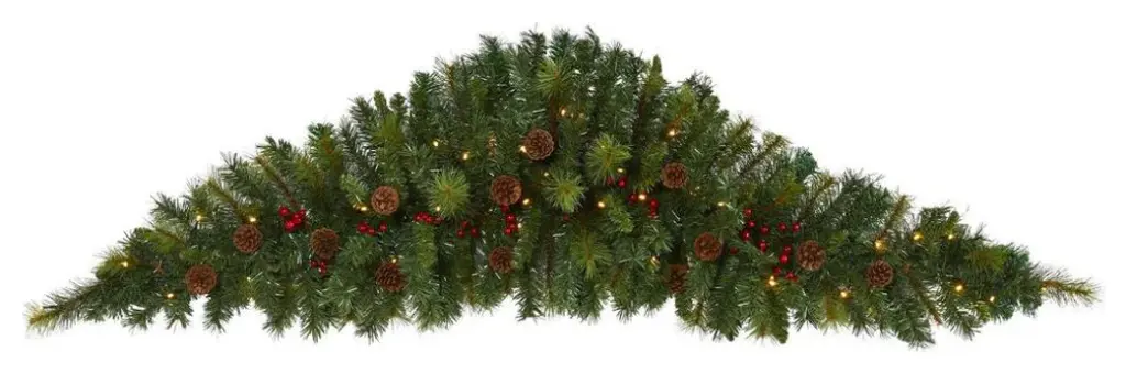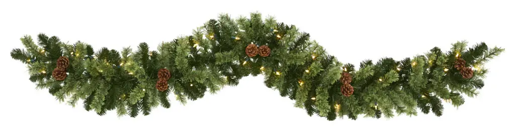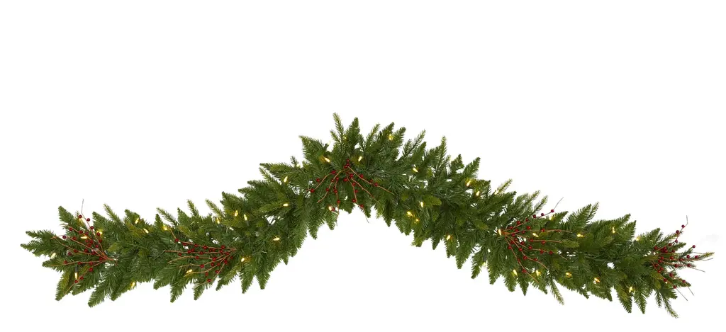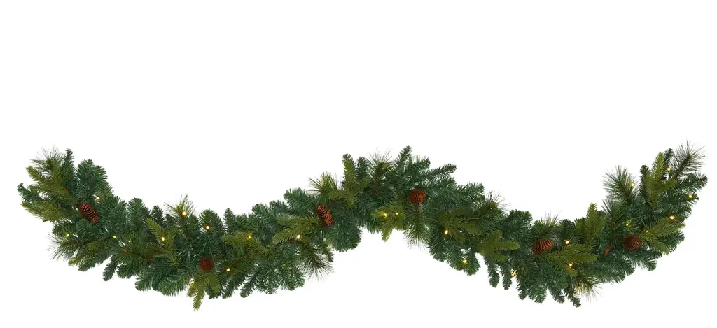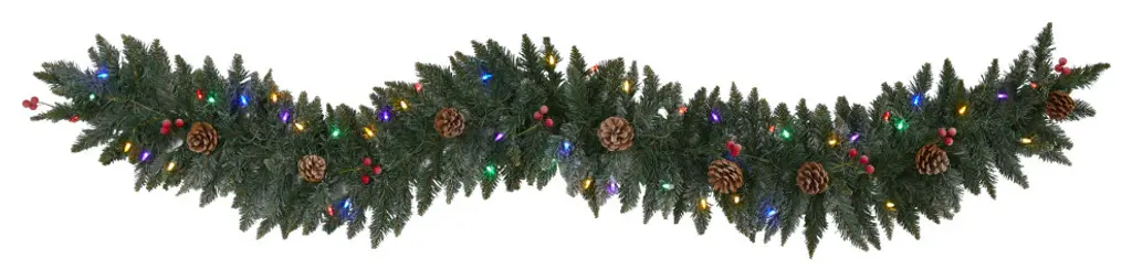 Complete your holiday decor scheme with this artificial winter garland, intricately designed from realistic looking foliage in a palette of seasonal evergreens and accented throughout with faux pinecones and holly berries to help evoke a traditional Christmas spirit. Arriving pre-strung with 50 lights to add a soft, holiday glow to horizontal surfaces like a mantle, bare counter, or stair banister, this handsome 6' long artificial garland will undoubtedly complete a traditional holiday setting for years to come.