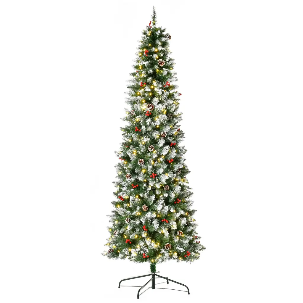 6Ft Pre-Lit Snow-Dipped Artificial Christmas Tree With Realistic Branches, 300 Led Lights, Pine Cones, Red Berries And 618 Tips - Green1