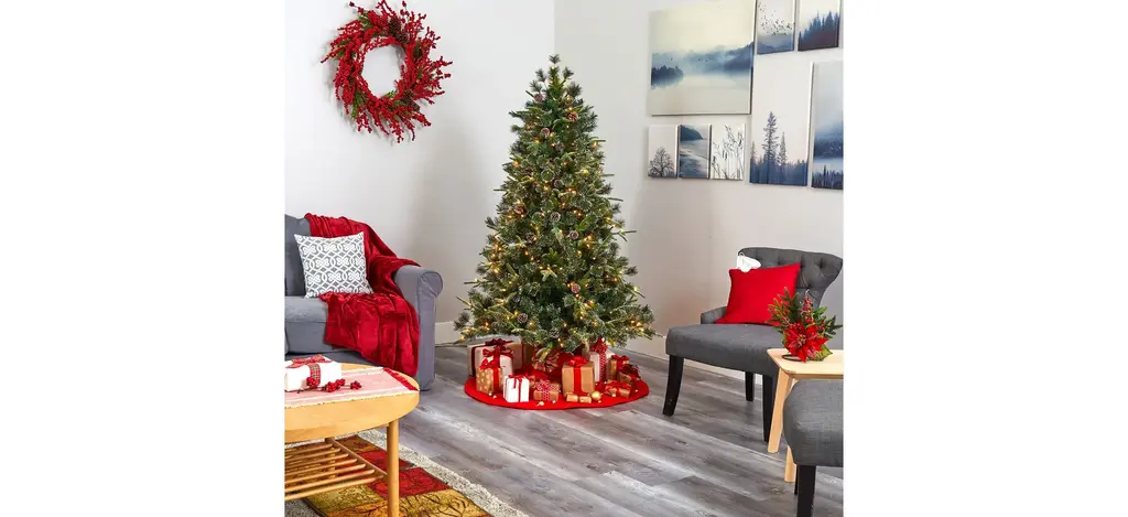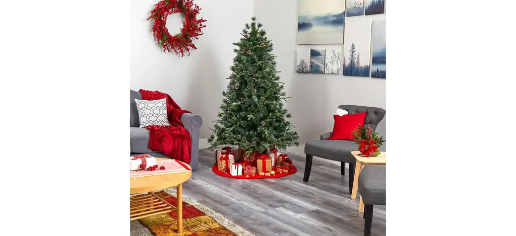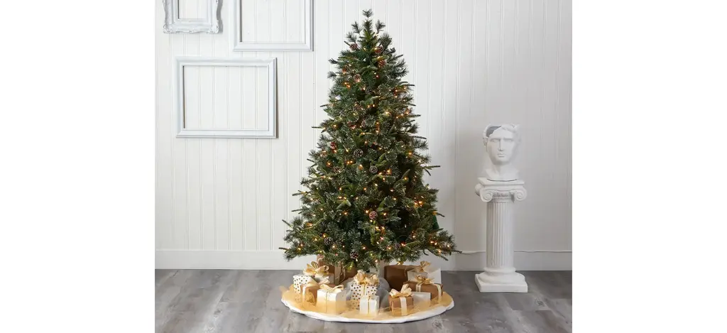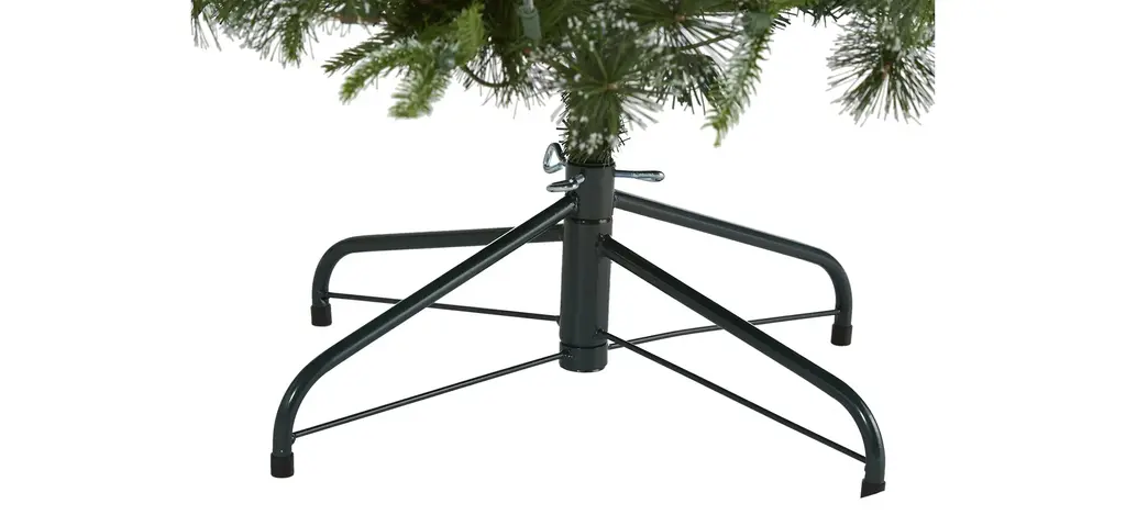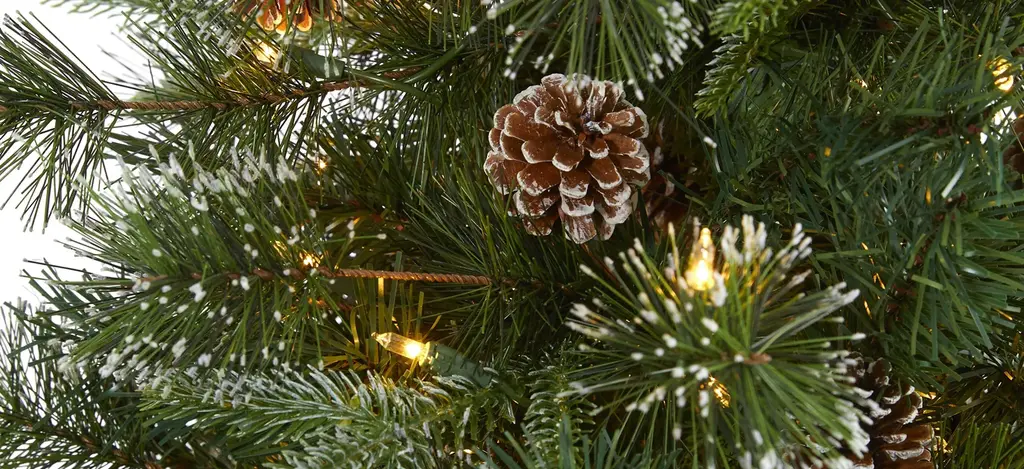 Evoke hints of a winter wonderland this holiday season with the help of this snowy artificial Christmas tree! Completely maintenance-free, this winter-inspired fake Christmas tree boasts a robust silhouette of snow-dusted foliage made up of 1242 easy-to-bend branch tips for decorating with your own holiday ornaments, accented throughout with faux pinecones that look incredibly lifelike. Arriving pre-strung with 250 clear LED lights to eliminate and carefully stabilized on a metal stand, this handsome 6' tall snowy artificial Christmas tree will not only make holiday decorating a breeze but ensure your home is always holiday-dressed for years to come.