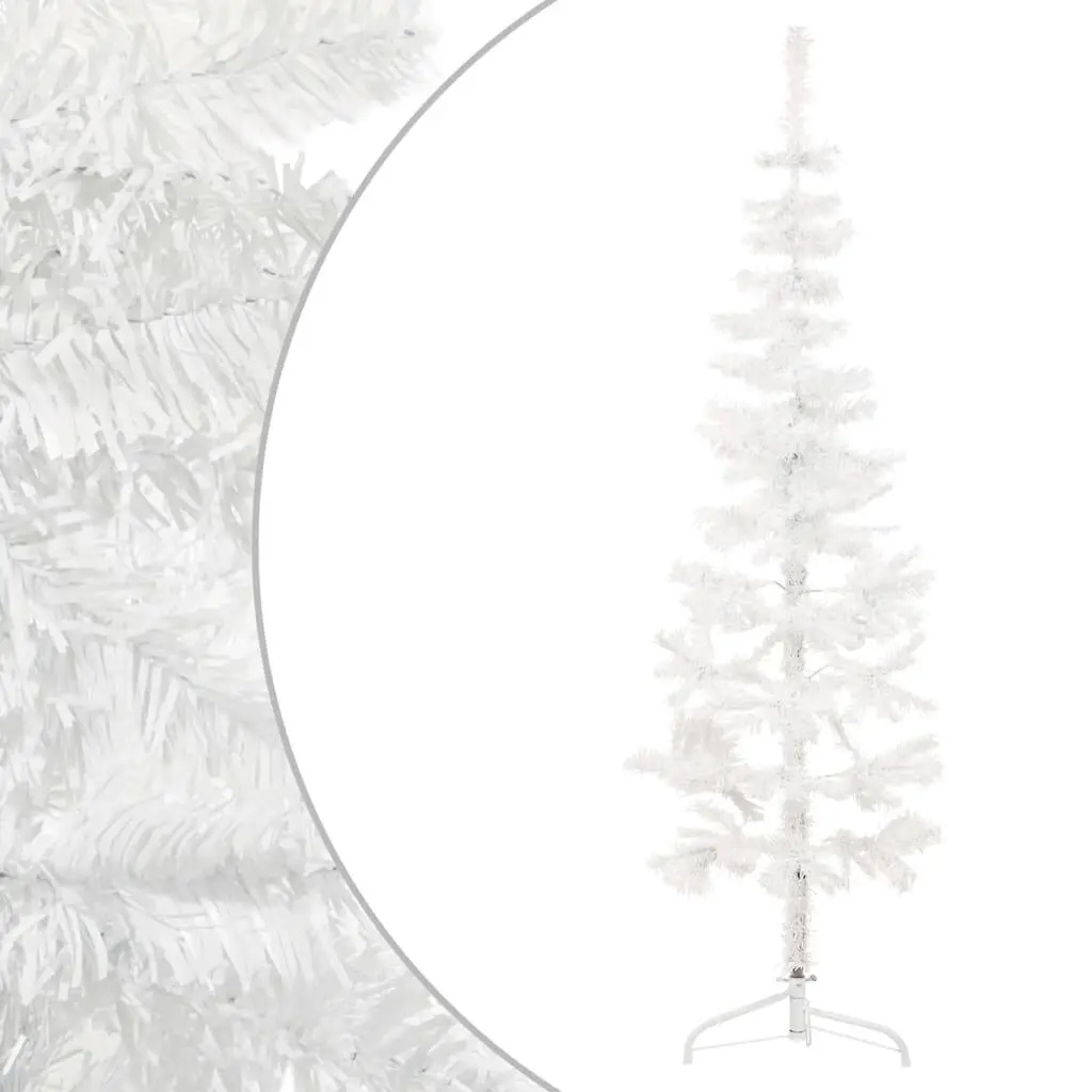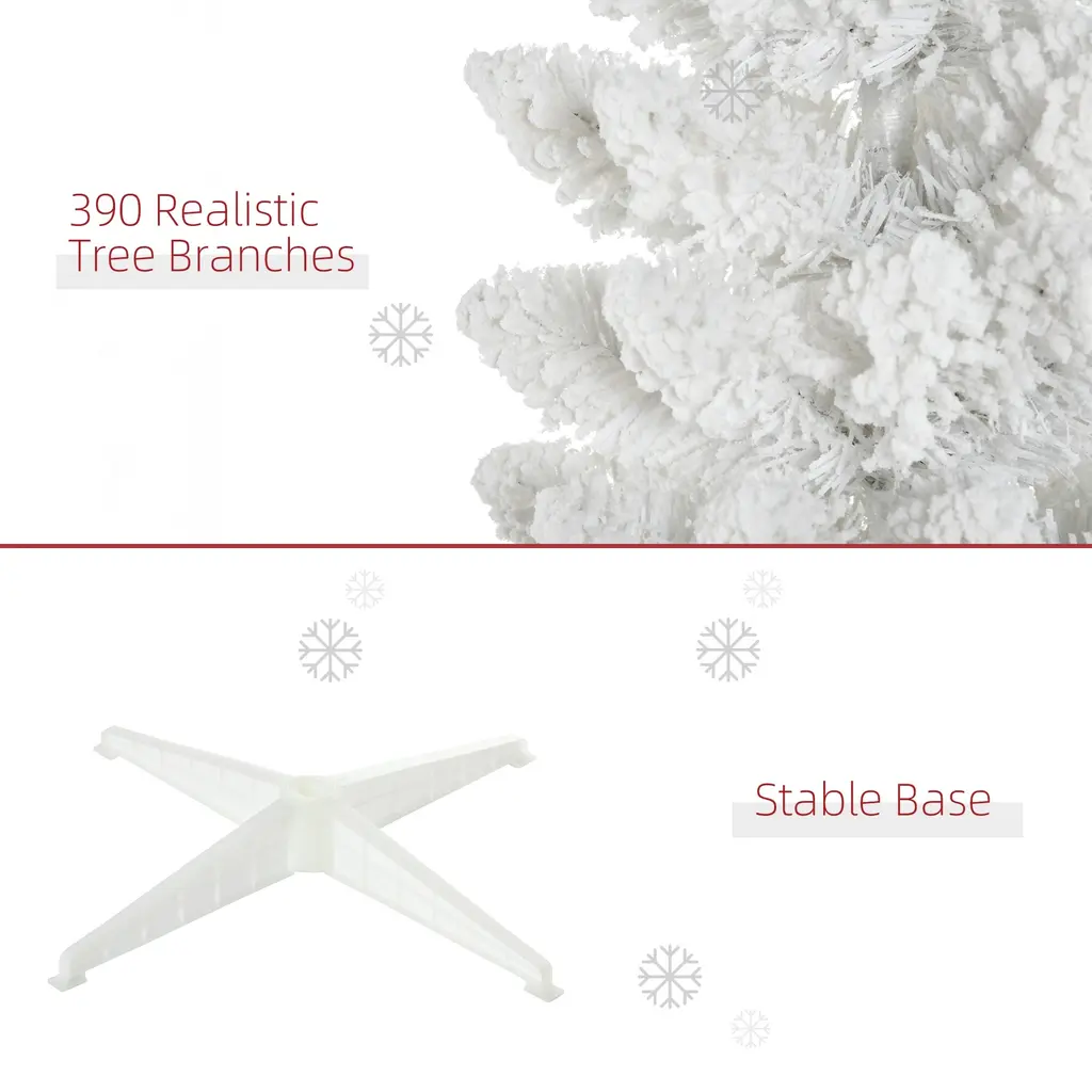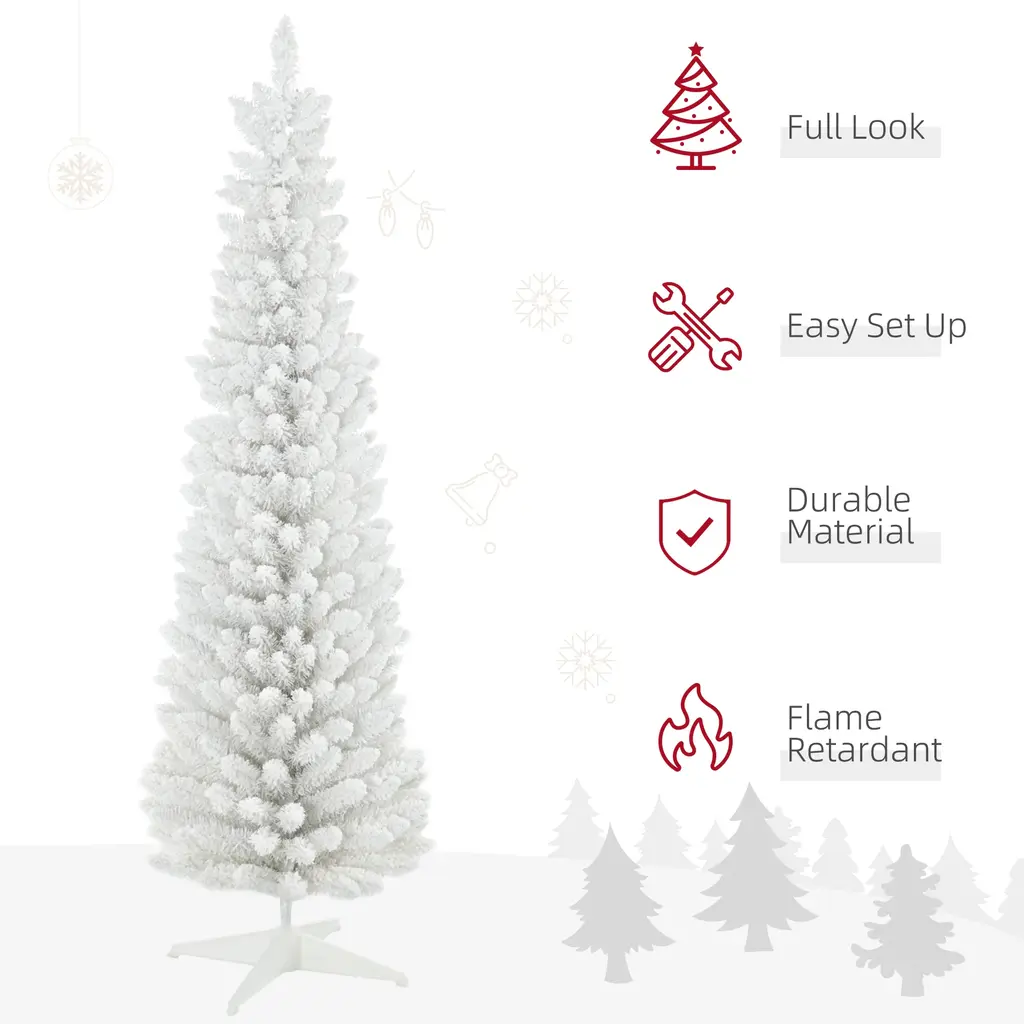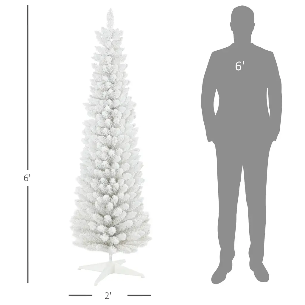 6Ft Snow Flocked Artificial Slim Pencil Christmas Tree With Realistic Branches And Plastic Base Stand - White