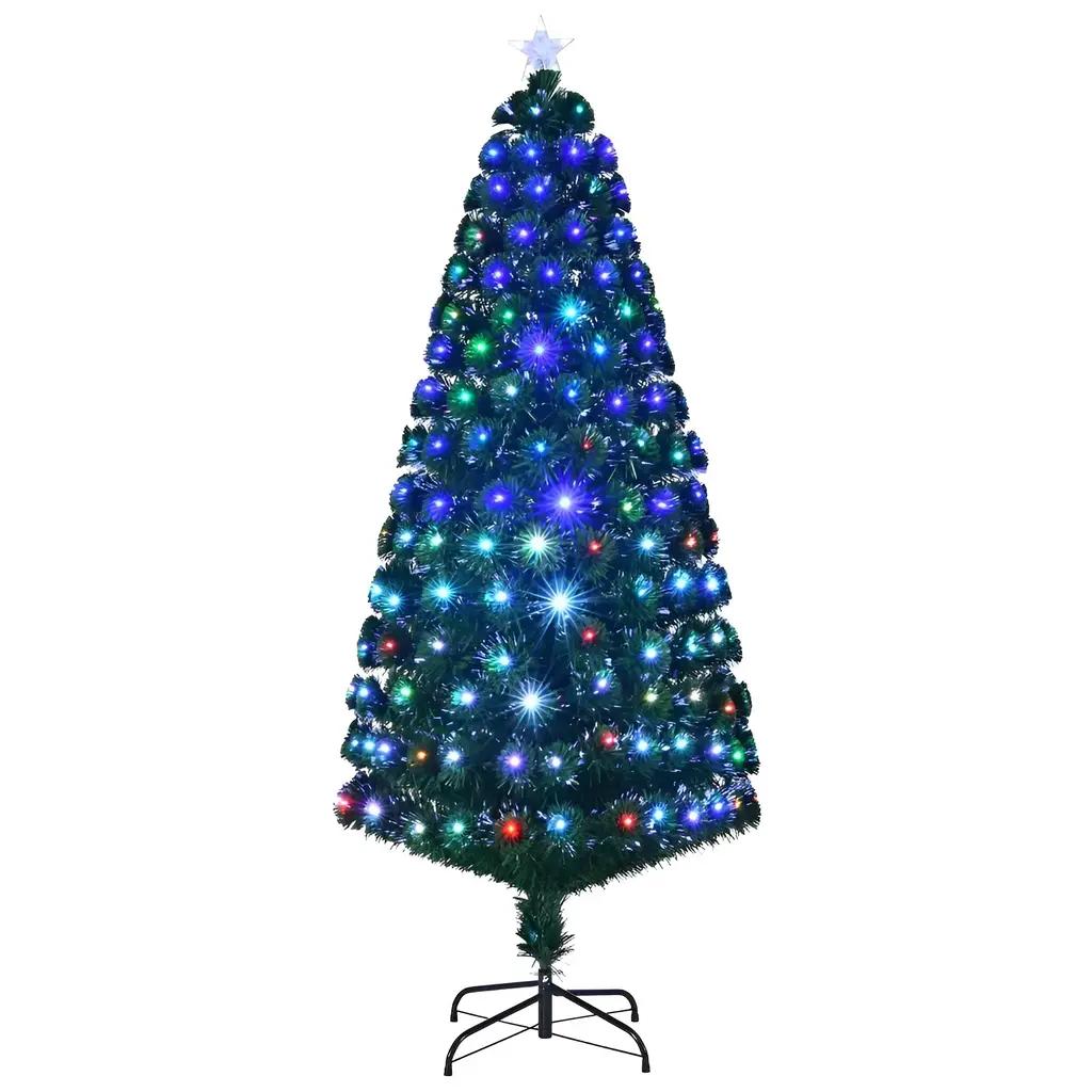 Six-Foot Tall Tree: Standing 6' tall, this lush tree serves as the focal point of any room; with pre-programmed lights and lush, full tree branches, it will be your holiday tree for years to come.Pre-Lit Fiber Optics/ Led Lights: Pre-programmed (non-changeable) multi-colored LED lights and fiber optic sprigs bring a festive, welcoming atmosphere to your home.Full Individual Branch Tips: A full-body, dense tree shape is provided by plentiful PVC branch tips for a life-like look that offers plenty of space for ornaments and tinsel.Easy To Assemble/ Dismantle: This tree separates into multiple, distinct parts to allow for easy assembly, dismantling, and storage during the holiday off-season.Sturdy Metal Base Included: A quality metal base is included to provide stability keeping your tree upright and secure throughout the holiday season.