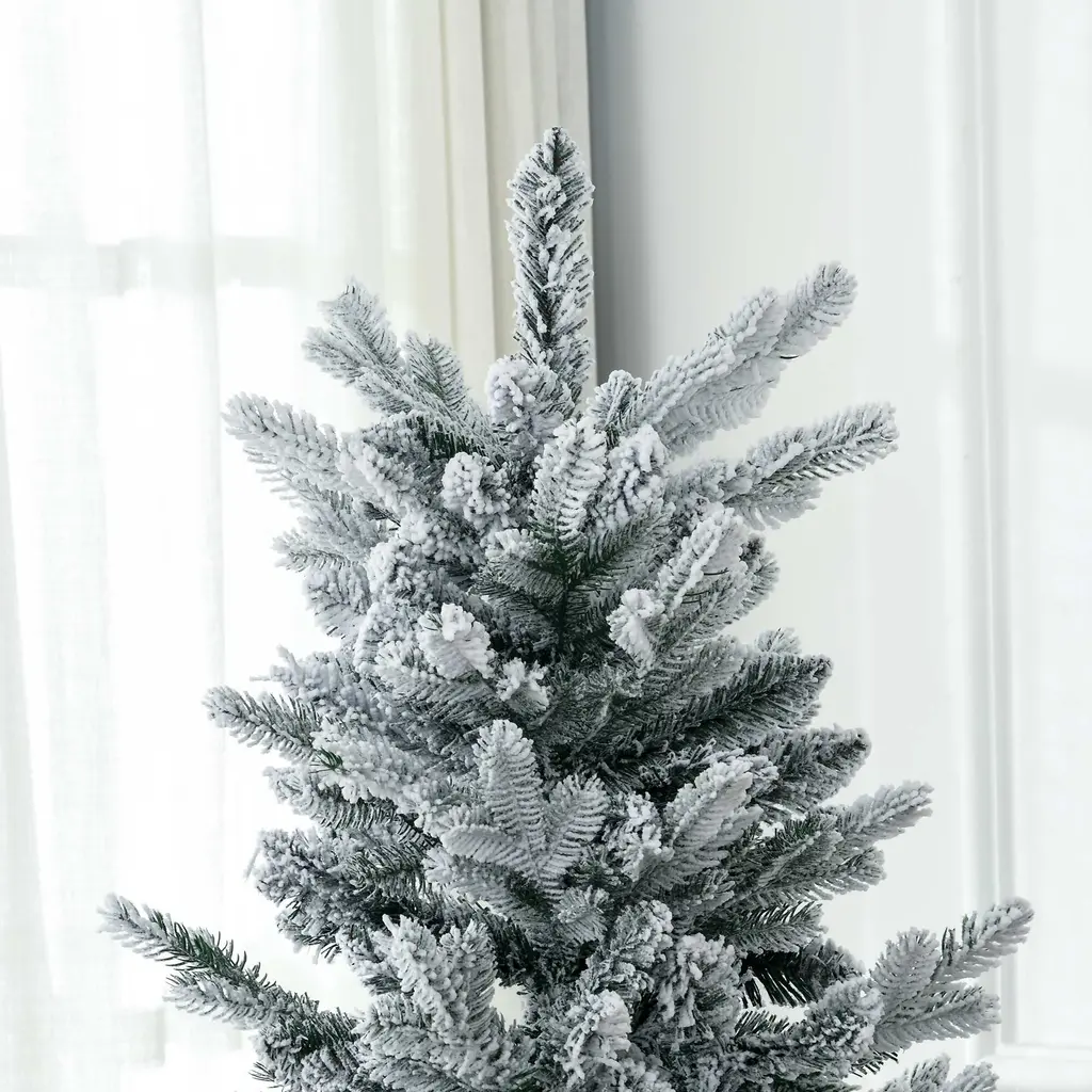 6Ft Tall Unlit Flocked Christmas Tree - Slim Pencil Shape, 477 Snow Branches, Easy Setup With Steel Base - Green