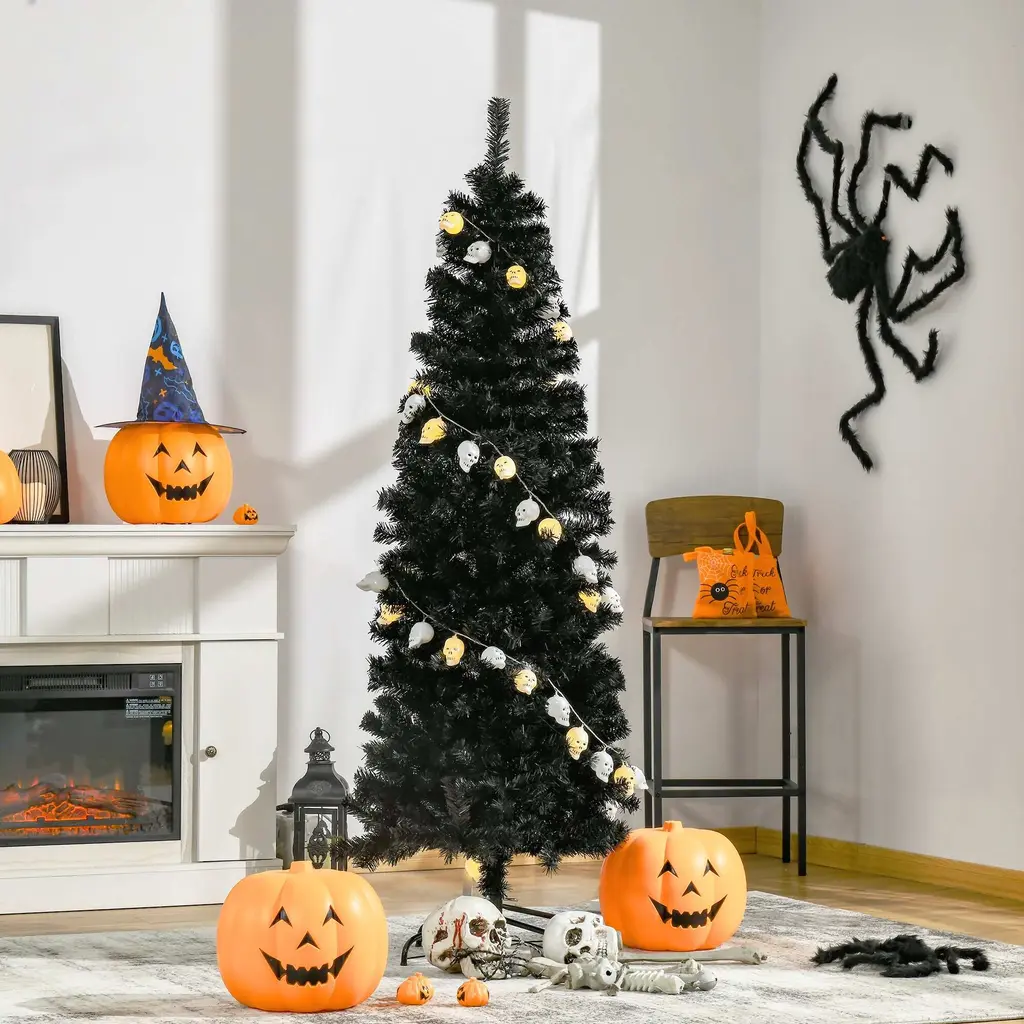 6Ft Unlit Artificial Pencil Christmas Tree, Slim Douglas Fir With Realistic Branches, 618 Tips - Black