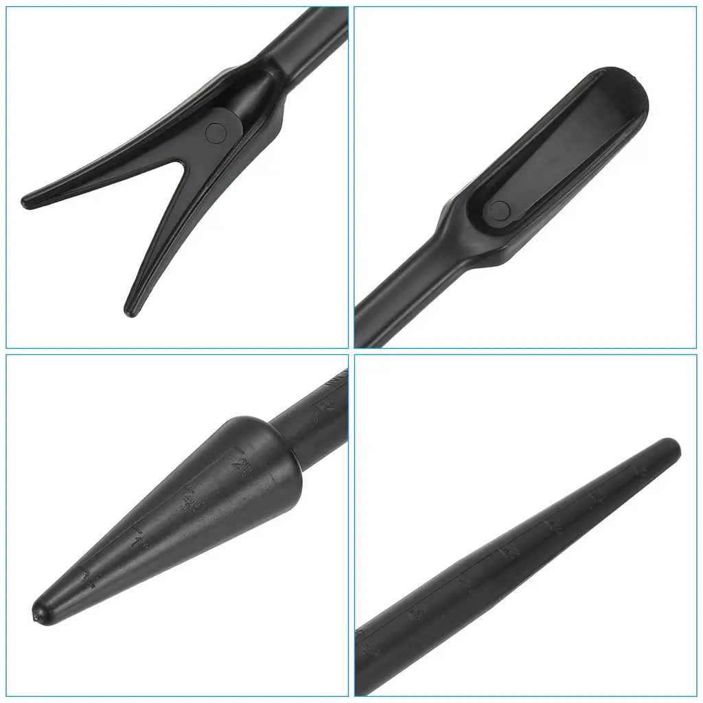 Succulent transplanting tools are tools designed specifically for transplanting for succulent plants. These tools make the process of handling succulents easier and more precise, minimizing the risk of damage to the plants.SpecificationColor: BlackMaterial: PPLength: 145mm / 5.7 inchPackage Content: 6 x Succulent Transplanting Tools(3pcs for each style)AdvantageThe transplanting puncher is used to create holes in the soil for planting. It allows for easier insertion of the plant's root ballThe serrated teeth on the shovel allow for effective cutting through roots, tough vegetation, or compacted soil. This makes it easier to dig into dense or hard surfaces, saving time and effort.This mini garden hand transplanter kit can help you perform most transplanting tasks well, such as digging holes, transplanting plant, loosening and spreading soil. Suitable for growing succulents, bonsai plants and garden vegetables.NotePlease confirm the size before placing an order.