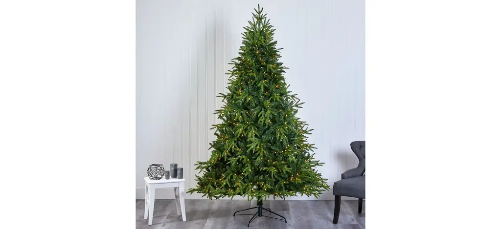 Evokes the holiday spirit even in the tightest spaces with the help of this 7.5' pre-lit Colorado mountain fir "natural look" artificial Christmas tree. Entirely maintenance-free, this realistic looking Christmas tree boasts a tight collection of evergreen foliage, with 3048 bendable branch tips to showcase your favorite decorative accents. Arriving pre-strung with 600 lights to help eliminate tangles and settled on a metal stand, this majestic 7.5' tall Christmas tree will not only make decorating a breeze but ensure your home is always seasonally attired for years to come.