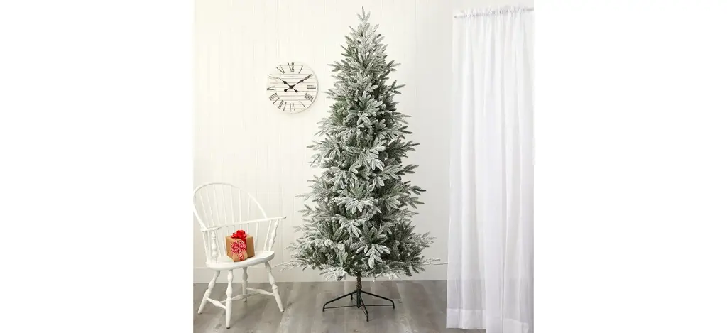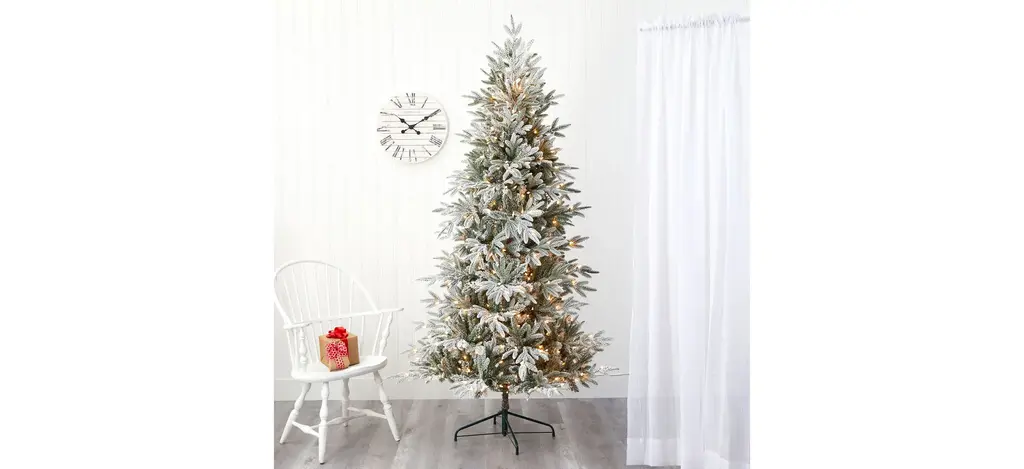 Create your own white Christmas this holiday season with the help of this 7.5 pre-lit flocked Manchester spruce artificial Christmas tree. Completely maintenance-free, this winter-inspired fake Christmas tree boasts various tiers of soft looking foliage made up of 949 easy-to-bend branch tips for accenting with your own personalized ornaments and holiday accents and finished with a light dusting of faux snow to evoke a winter setting. Arriving pre-strung with 450 LED lights to eliminate tangles and carefully stabilized on a metal stand, this enchanting 7.5' tall flocked artificial Christmas tree will not only make holiday decorating a breeze but ensure your home is always holiday-dressed for years to come.