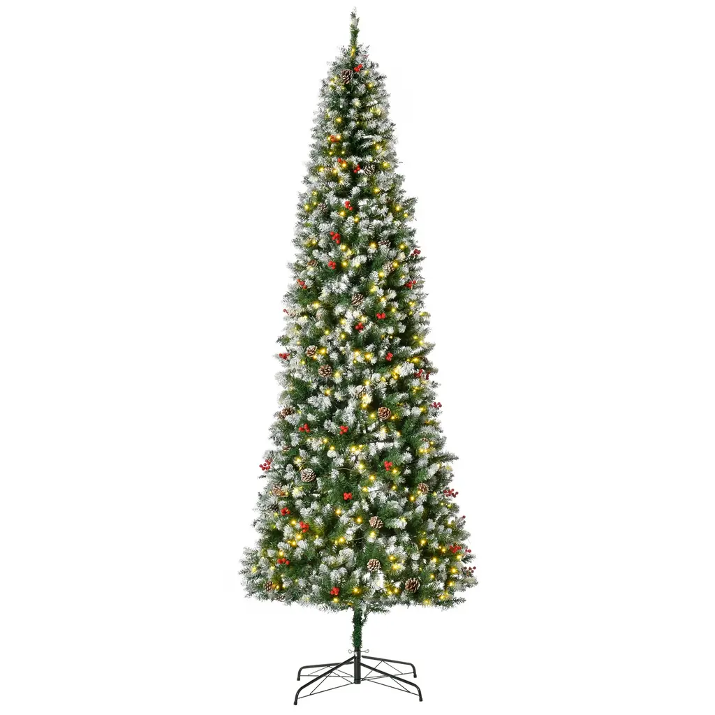 7.5ft Pre-Lit Snow-Dipped Artificial Christmas Tree With Realistic Branches, 350 Led Lights, Pine Cones - 9 Foot
