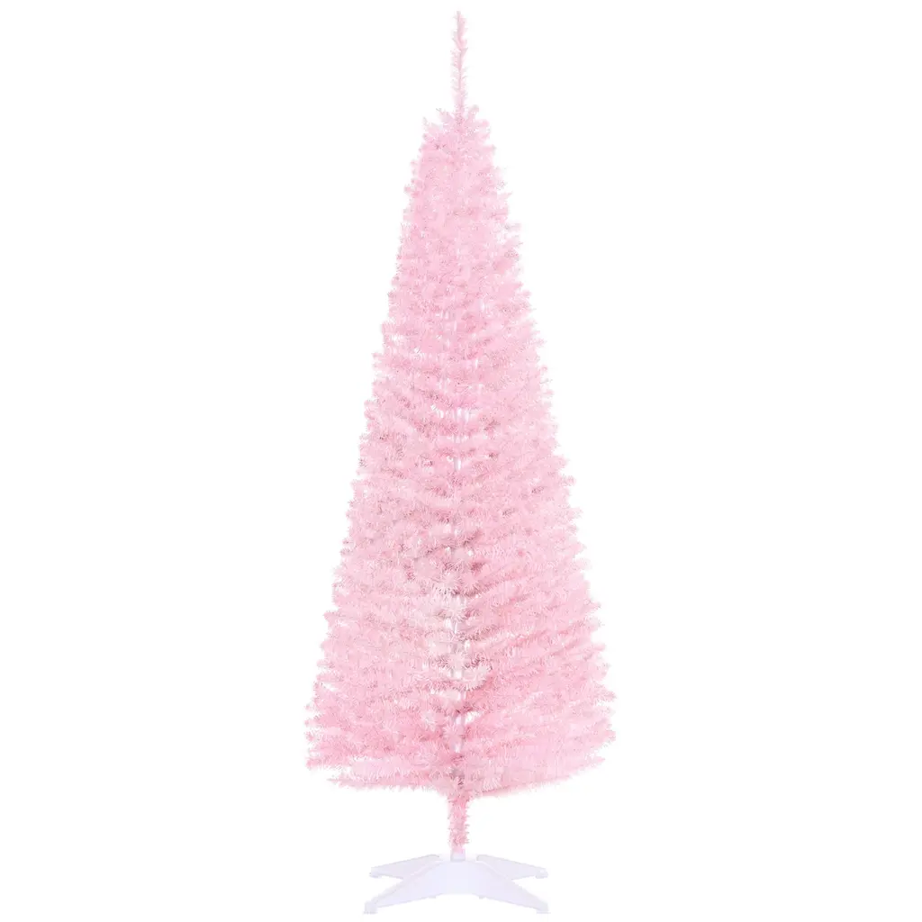 Pink Christmas Tree:This compact pink Christmas tree will be a beautiful décor choice during the holidays, especially for small spaces like apartments and dorms.Full Branch Tips: A pencil tree shape is densely covered by plastic branch tips for a full-bodied, life-like Xmas tree look.Sturdy Base Included: A steel base is included to provide stability and help keep your Christmas tree standing upright and secure throughout the holiday season.Easy To Assemble: The branches open automatically, saving you assembly time. After the holidays are over, you can easily take this Xmas tree apart by folding the feet for effortless storage.Pencil christmas Tree Info:Please note: Ornaments are NOT INCLUDED and are used just for effect. In order to get a full appearance, please spread out all individual tips.