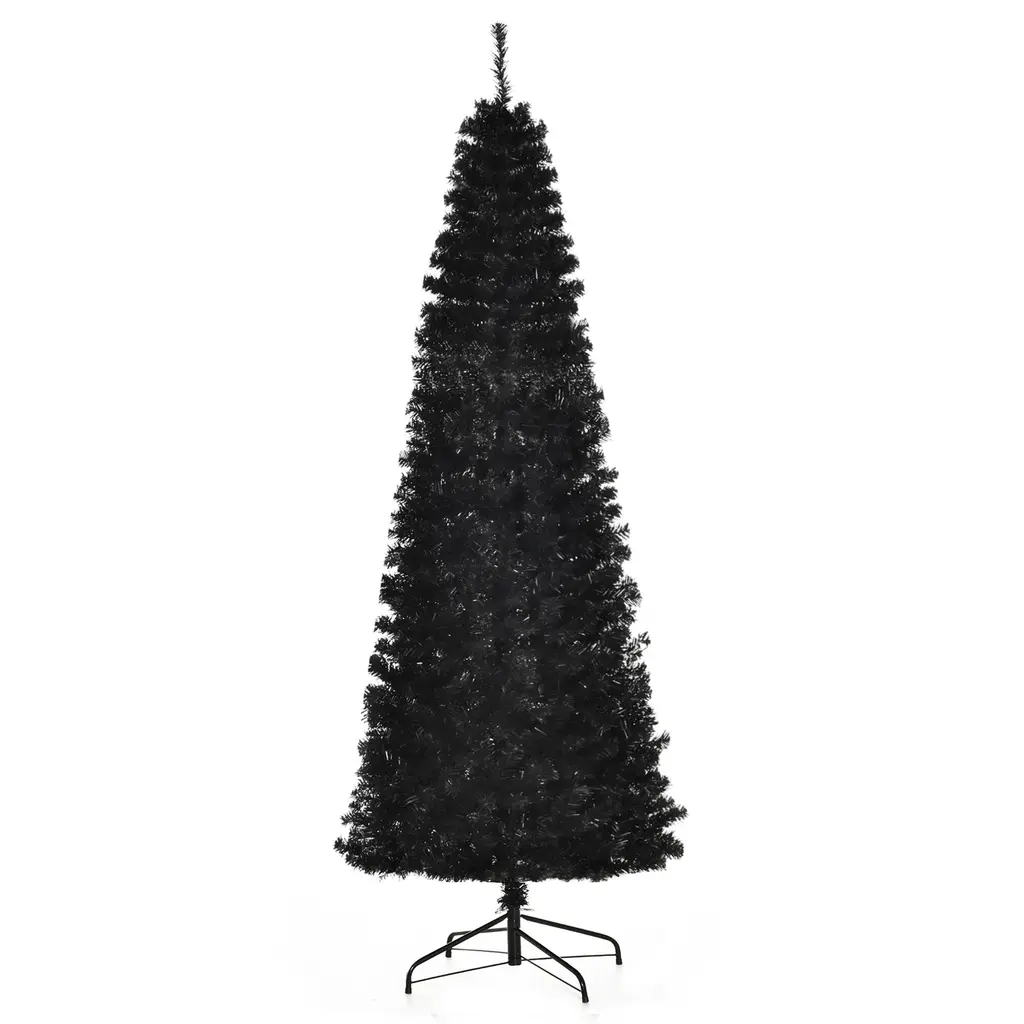 7Ft Pencil Artificial Christmas Tree Slim Douglas Fir Xmas Tree With Realistic Branches, Halloween Tree With 818 Tips, Black - Black