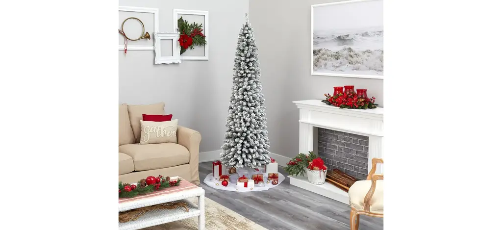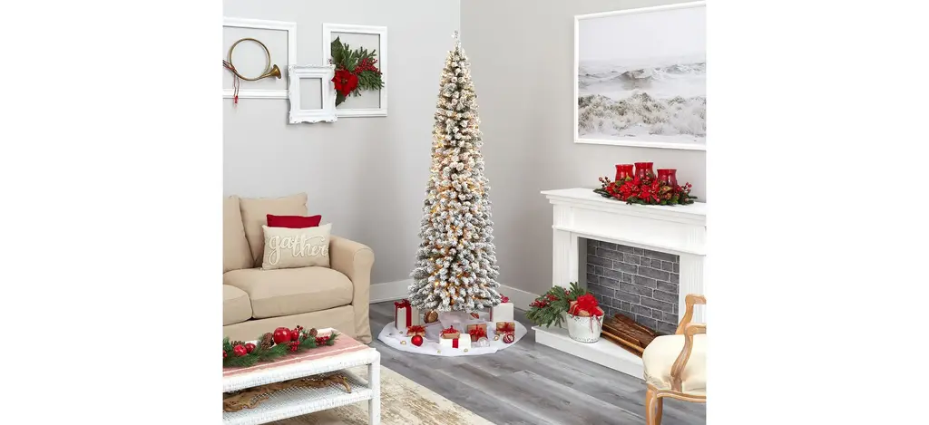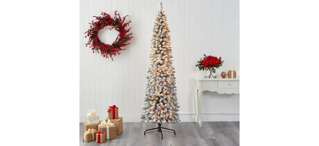 7Ft. Pre-Lit Flocked Pencil Artificial Christmas Tree
