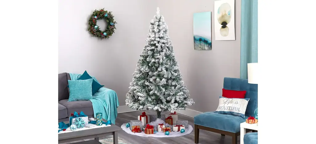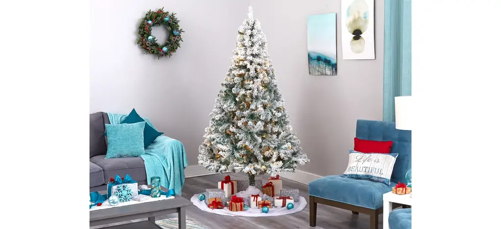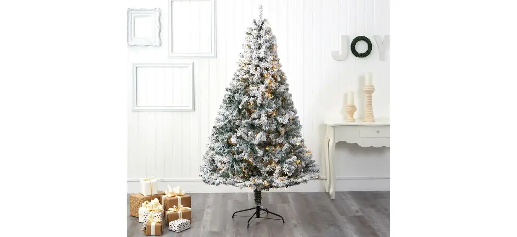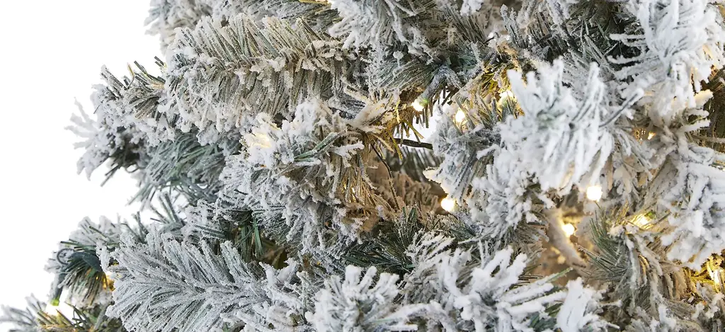 Evoke a winter wonderland this season with the help of this 7' pre-lit flocked rock springs spruce artificial Christmas tree. Easy to set-up and entirely maintenance-free, this winter-inspired Christmas tree boasts a rich collection of realistic looking foliage consisting of 800 easy-to-bend branches for showcasing your own personalized ornaments and holiday accents - all lightly flocked with faux snow, creating a picturesque Christmas. Arriving pre-strung with 350 clear LED lights to eliminate tangles and carefully stabilized on an accompanying stand, this impressive 7' tall flocked artificial Christmas tree will undoubtedly transform any home or office into a joyous holiday setting for years to come.