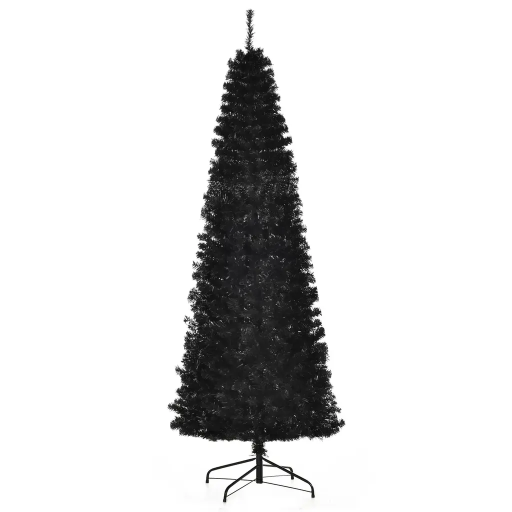 7Ft Tall Slim Pencil Christmas Tree, Unlit Artificial Douglas Fir With Realistic Branches, 818 Tips - Black