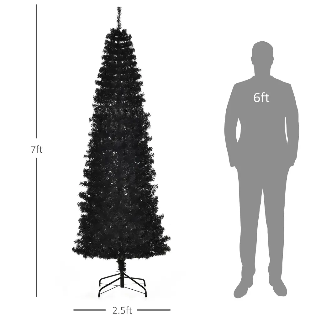 7Ft Unlit Slim Pencil Christmas Tree, Artificial Douglas Fir With 818 Tips, Realistic Branches & Lightweight Base - Black