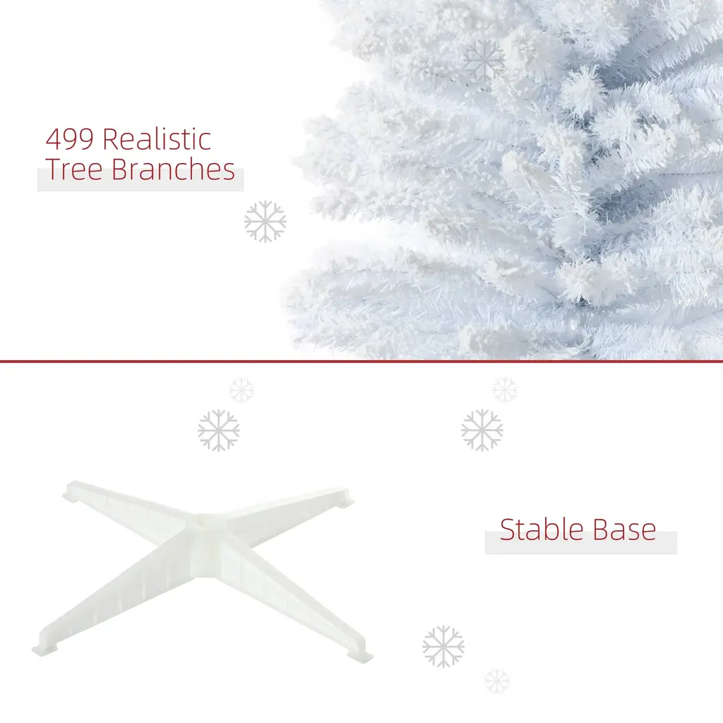 7Ft Unlit Snow Flocked Pencil Christmas Tree - Slim Artificial Xmas Tree With Realistic Branches, Easy Setup - White