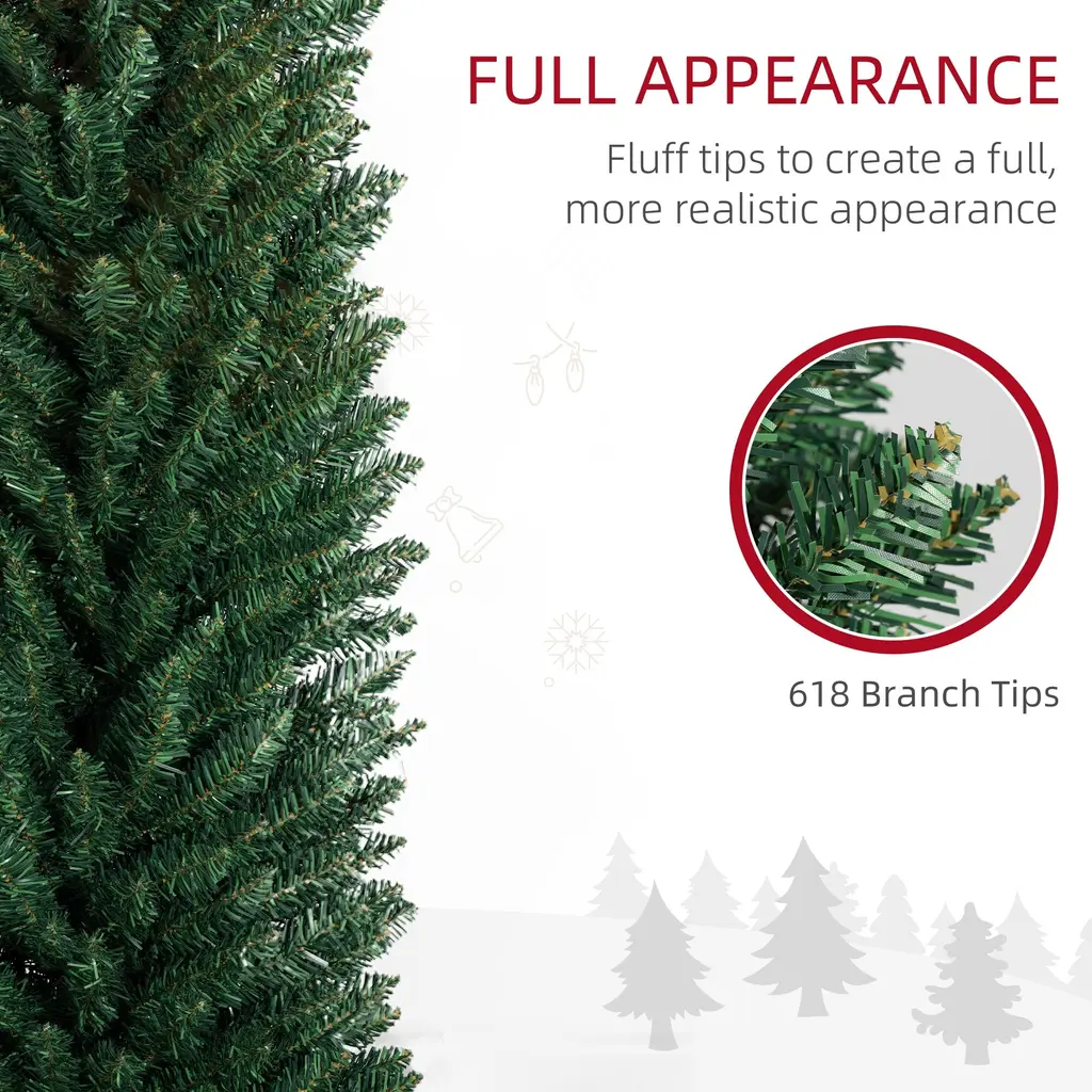 8' Artificial Pencil Christmas Tree, Slim Xmas Tree With 618 Realistic Branch Tips And Plastic Stand, Black - Green
