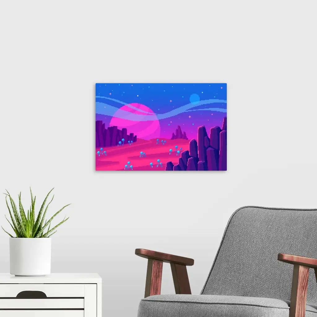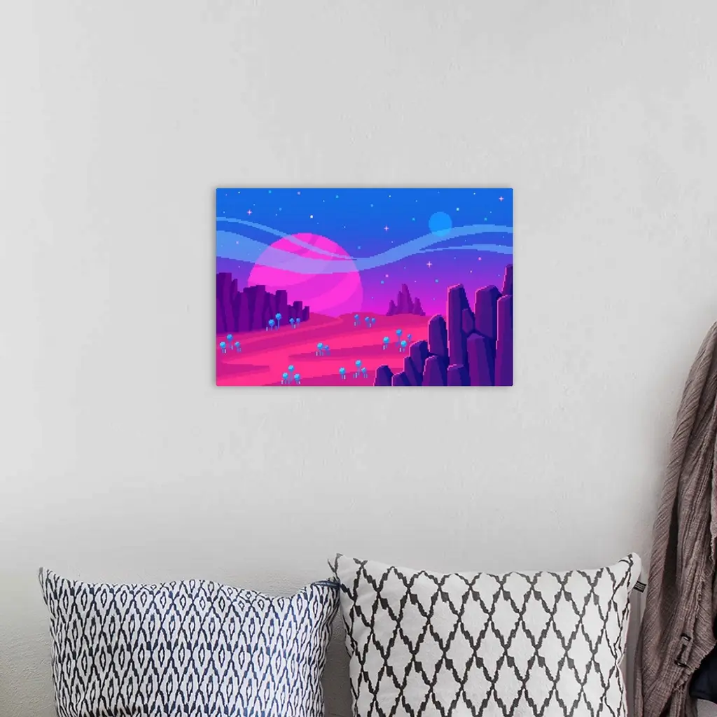 8-Bit Sharp Stones And Plants On Alien Planet wall art for home and office decor. Discover canvas art prints, photos, mural, big canvas art and framed wall art in GreatBigCanvas.com's varied collections.