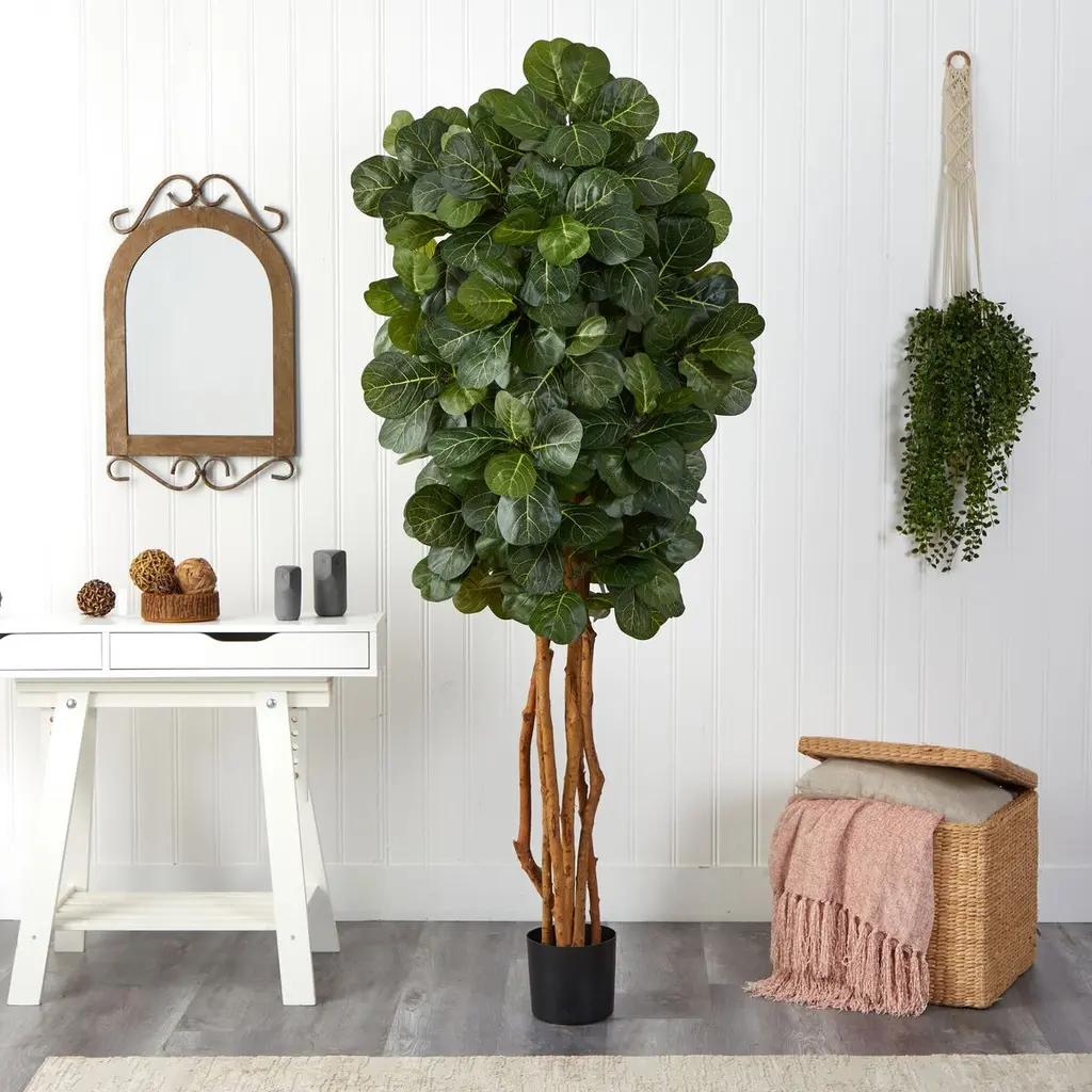 Fiddle-leaf fig trees can be temperamental, but this faux version is guaranteed to maintain its glossy green leaves and lush good looks with no effort on your part. Standing seven feet tall, it will command attention wherever you place it.