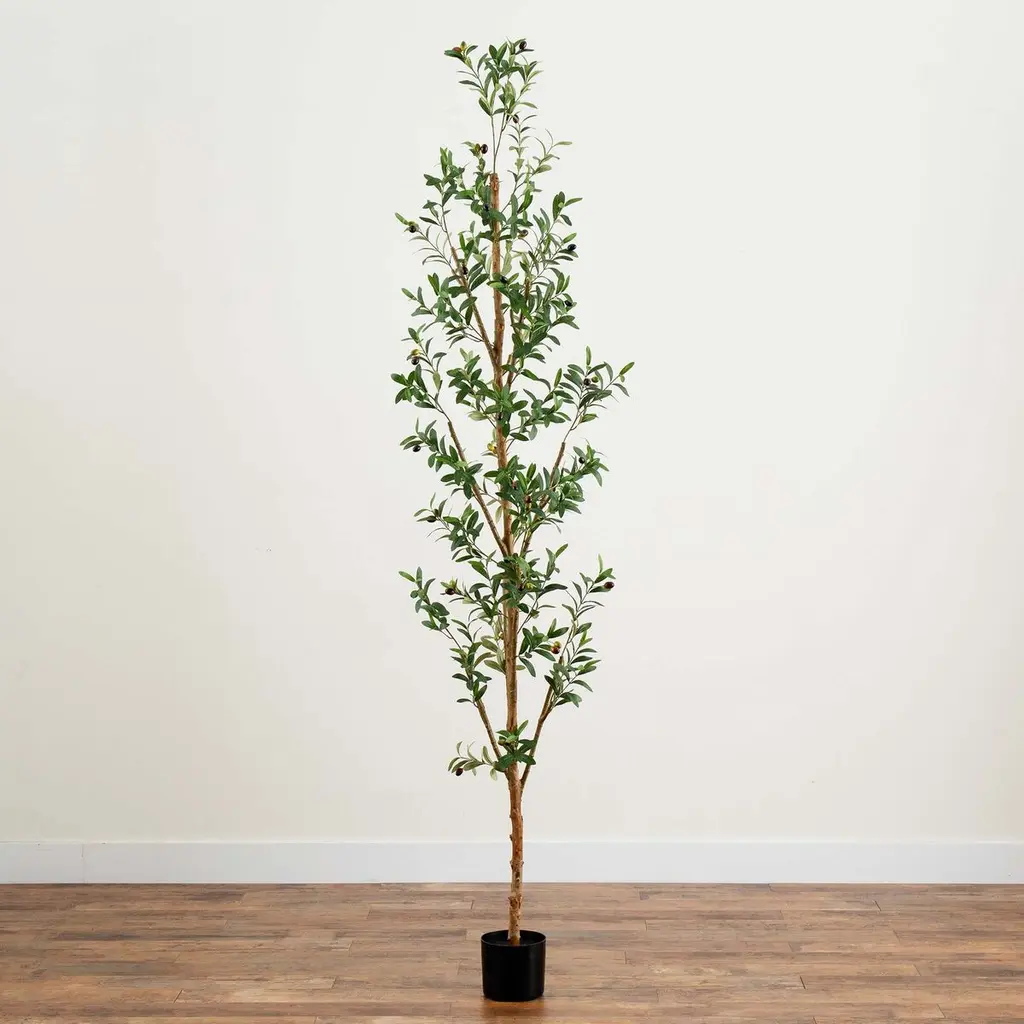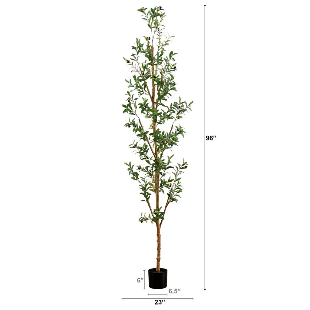 Bring a touch of Mediterranean elegance to your space with the faux olive tree, a piece that effortlessly combines timeless beauty and modern charm. This tree showcases a natural, wooden trunk that gracefully matures over time, adorned with leaves in a blend of light and dark green shades. Crafted from high-quality materials by seasoned horticulturists, the branches are designed to be bendable, allowing you to create a unique, personalized appearance. Accented with faux olives in various hues, it's a versatile addition to any decor style. Explore this tree in sizes ranging from mini to tall, perfect for any space in your home.