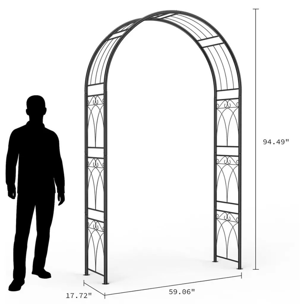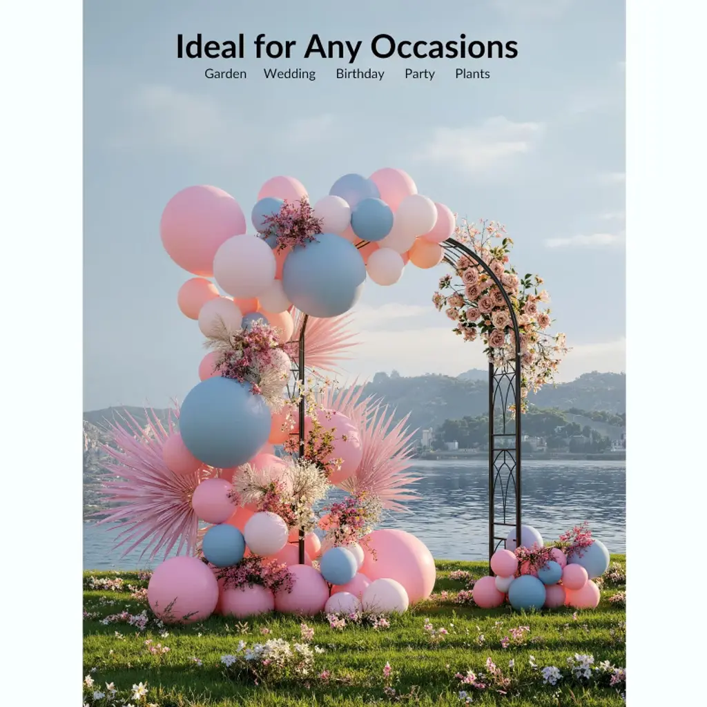 Crafted from heavy-duty irons , this garden arch surpasses standard materials with triple-layer protection—featuring a black powder-coated steel frame and epoxy anti-rust paint for superior durability. Engineered to resist wind, corrosion, and deformation, it maintains its elegant shape even under the weight of lush climbing plants or floral decorations. Perfect for indoor and outdoor use, it delivers unmatched weather resistance and long-lasting beauty.