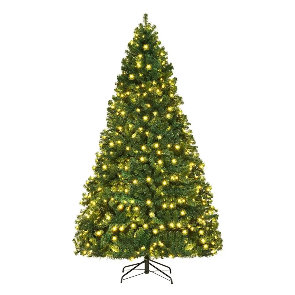 8Ft Pre-Lit Hinged Pvc Artificial Christmas Tree W/ 430 Led Lights - 57"x96" - Green - 8 Foot