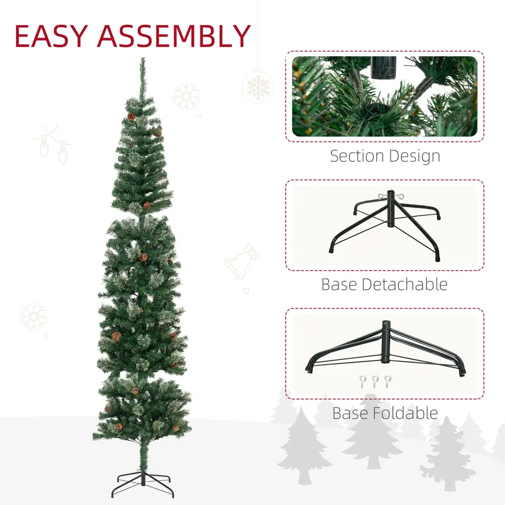 9.5 Foot Pencil Artificial Christmas Tree, Slim Pine Needles Xmas Tree With Realistic Branches, Pine Cones, Metal Base, Green - Green