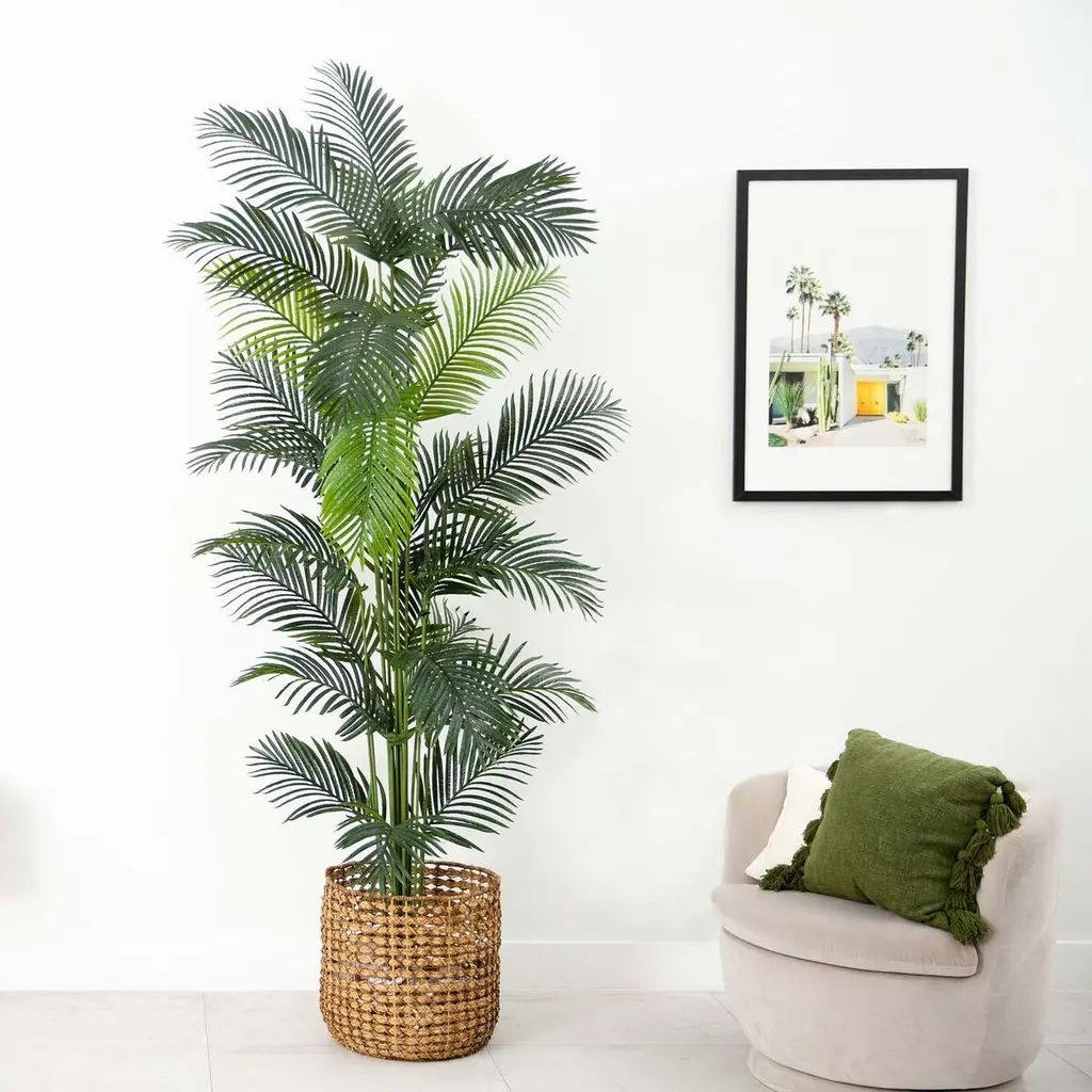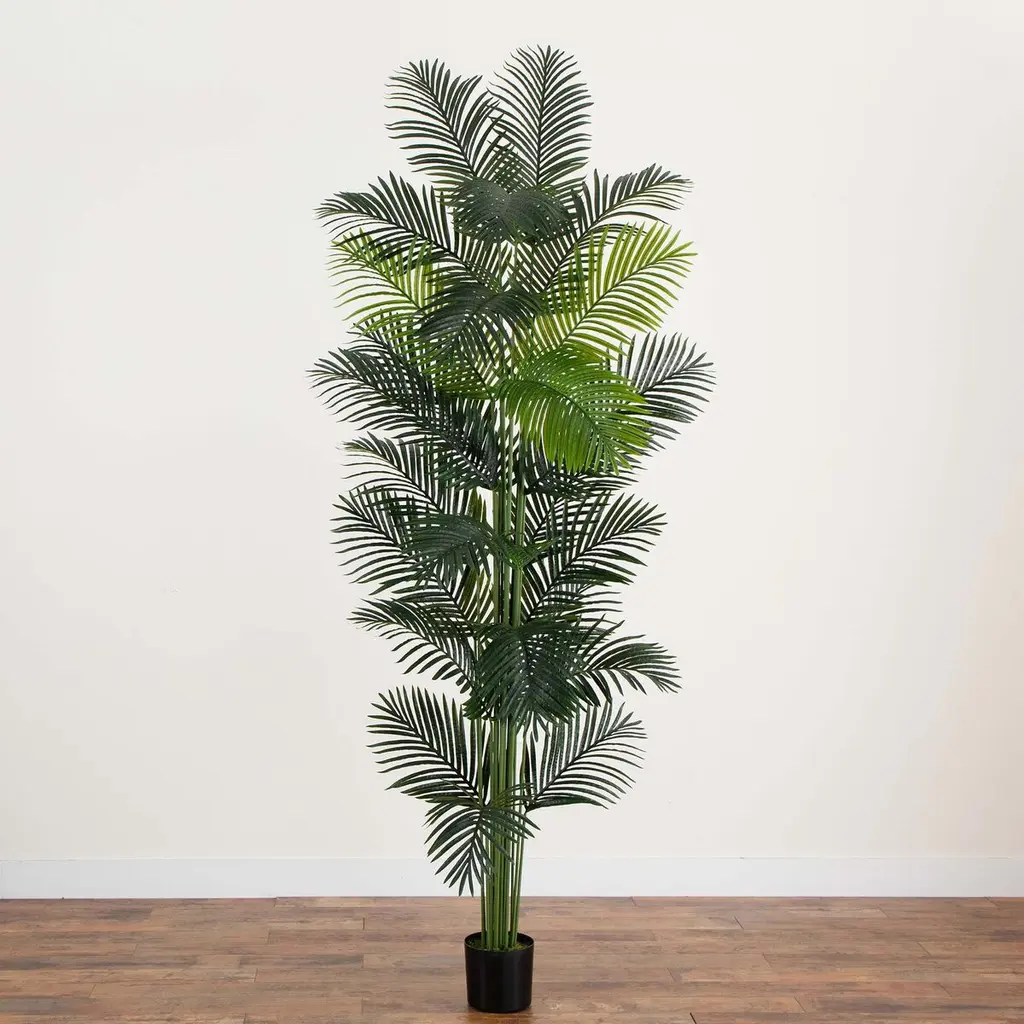 Transform your home or office into a tranquil oasis with an artificial Paradise Palm Tree. Drawing inspiration from the idyllic Caribbean coast, this palm tree offers a slice of paradise with its diverse shades of green fronds, elegantly cascading from slender branches in a dazzling firework pattern. Expertly designed by horticulturists, each element of this tree captures the serene essence of a beach environment. The flexible branches allow for personalized styling, ensuring a distinctive and unique appearance. Standing tall at 9' in a simple nursery planter, this Paradise Palm Tree is perfect for enhancing spaces with high ceilings, infusing a vacation-like ambiance into your everyday surroundings. Ideal for a living room, foyer or bedroom.