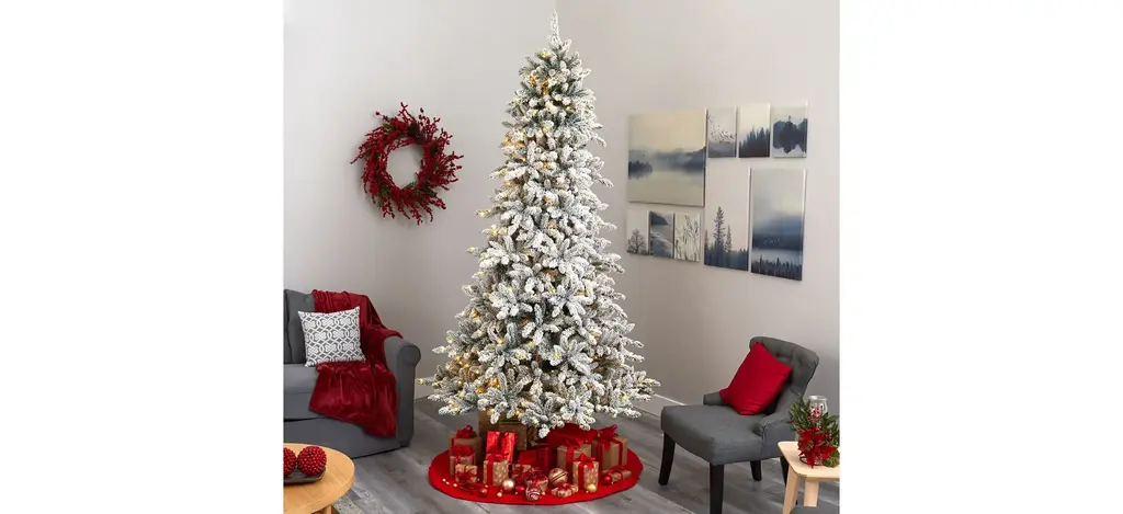 9Ft. Pre-Lit Flocked Livingston Fir Artificial Christmas Tree