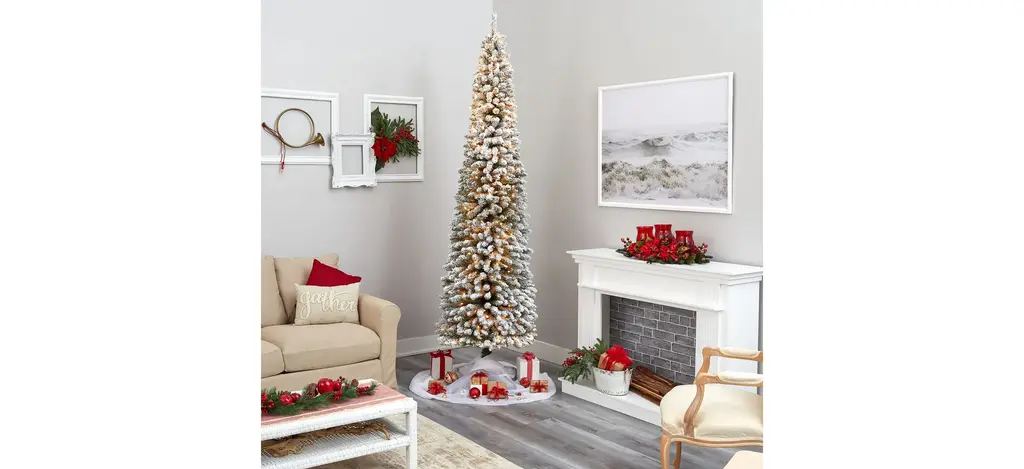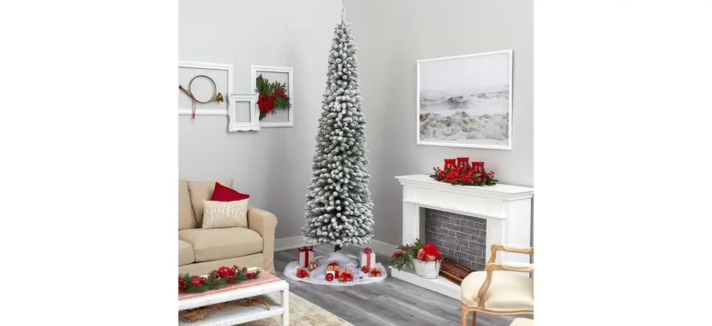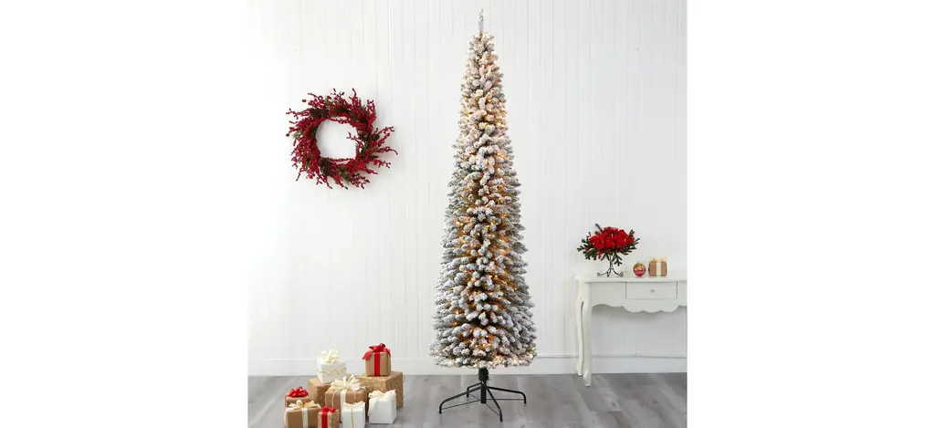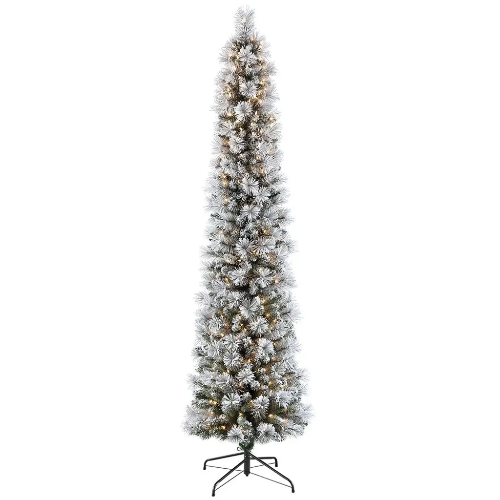 9Ft. Pre-Lit Flocked Pencil Artificial Christmas Tree