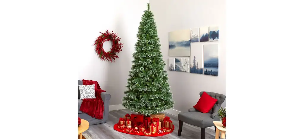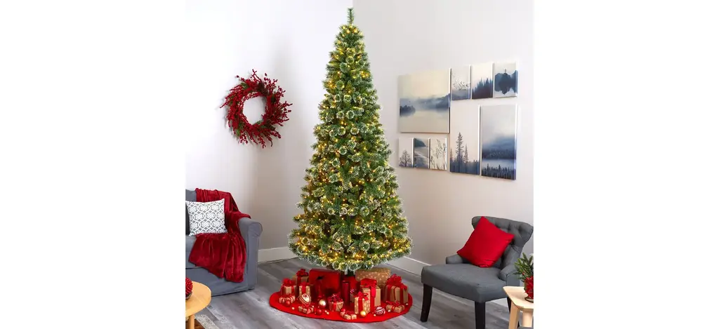 9Ft. Pre-Lit Wisconsin Slim Snow Tip Pine Artificial Christmas Tree