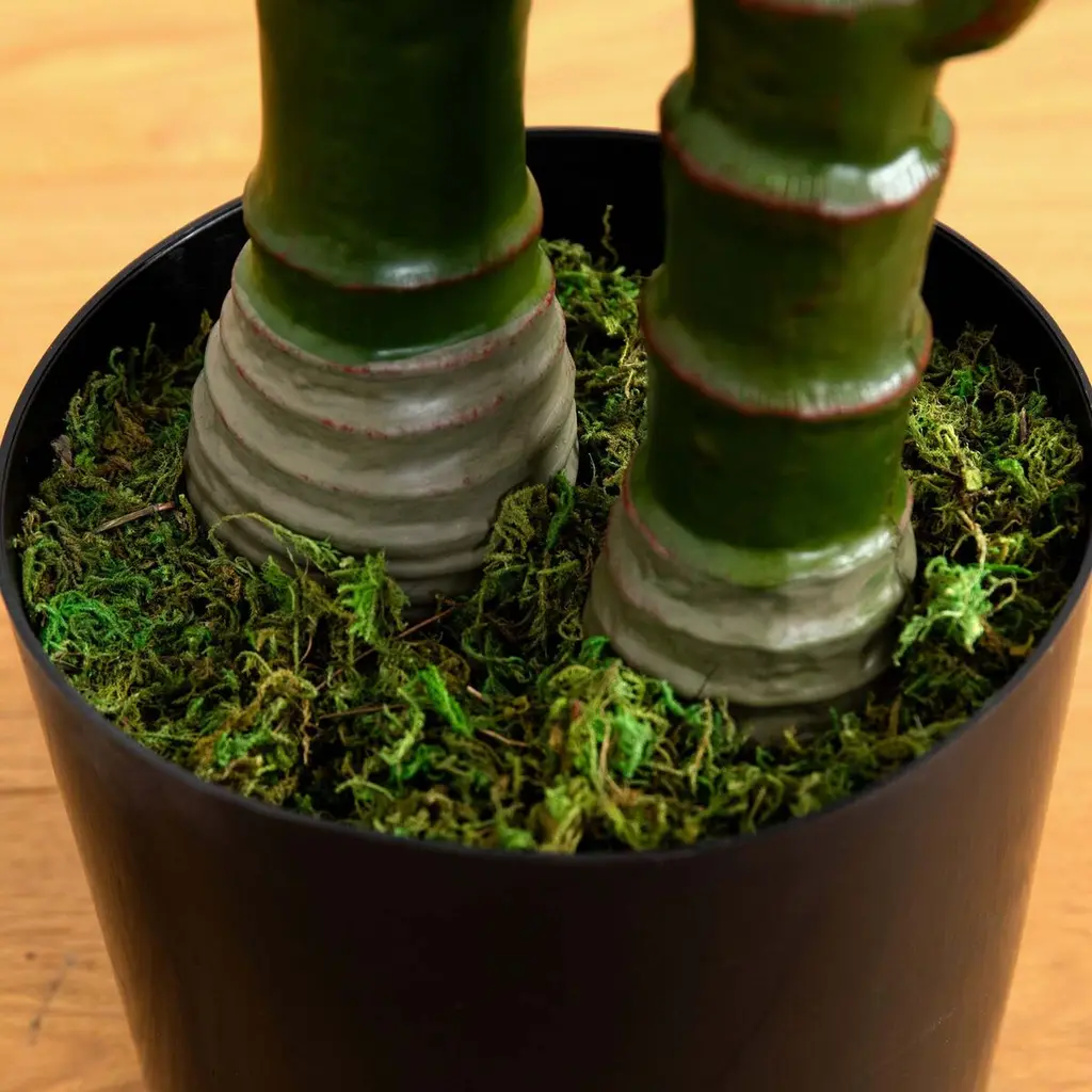 Take your space to new heights with the exotic charm of the artificial Double Robellini Palm Tree. Drawing inspiration from the idyllic Floridian coast, this tree invites a vacation-worthy ambiance into your home, complete with oceanic allure. Our horticulturists, well-versed in the beauty of seaside landscapes, have meticulously captured the essence of the palm with detailed fronds in various shades of green and authentic touches in the trunk's design. Customize the look by shaping the fronds to your preference for a truly unique display. The best part? Extend the beach to your backyard, year-round! This tree is manufactured using a special process, making it safe for outdoor use. At a towering 9' from a nursery planter, this palm is perfect for areas with high ceilings, bringing a piece of the tropics to you. Makes an excellent addition to a bedroom, foyer, front porch or pool cabana.
