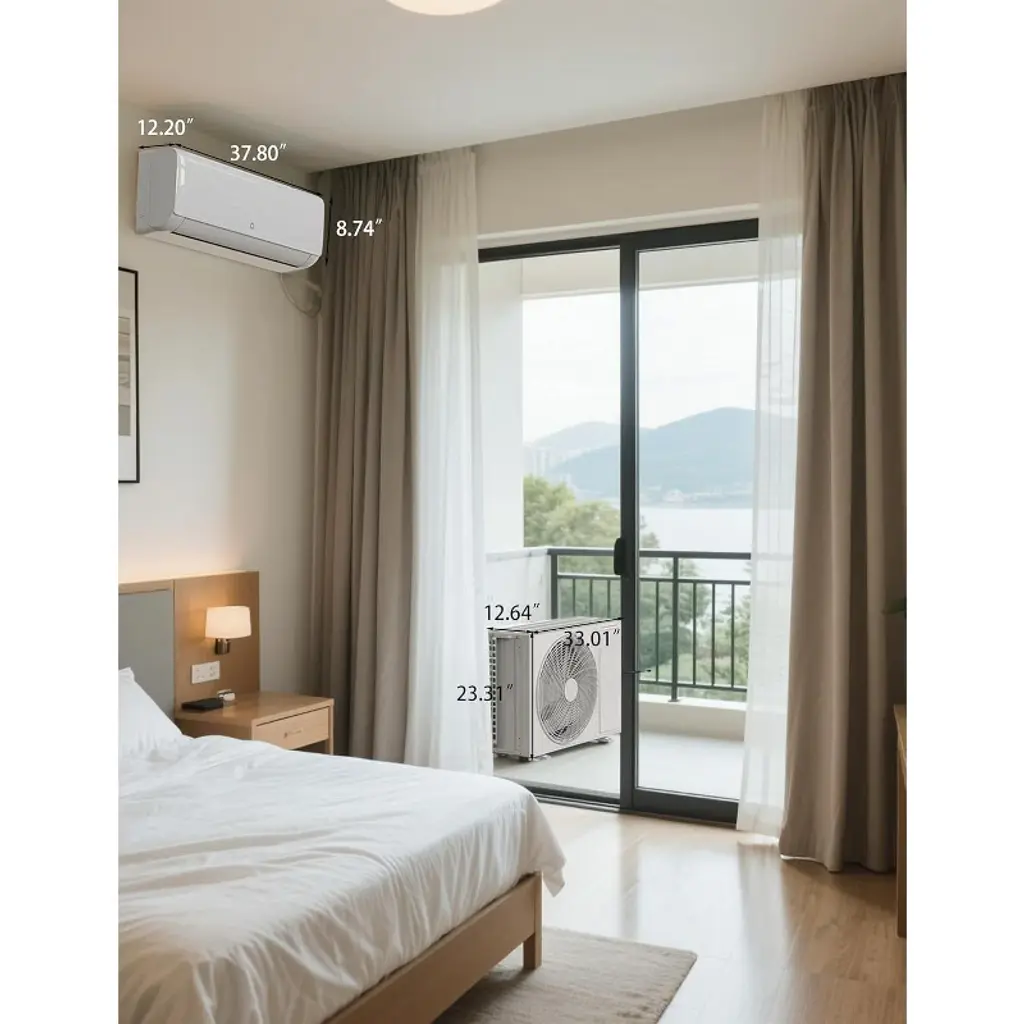 Acekool’s 18,000 BTU mini split AC and heat pump provides year-round comfort for spaces up to 1,250 sq ft. This system uses inverter technology for fast turbo cooling and heating, keeping your home at a steady temperature from 60°F to 90°F. With an Energy Star-rated 21 SEER2, it offers high efficiency and quiet operation, making it an ideal choice for living rooms, bedrooms, or offices. Switch between cooling, heating, dry, and fan modes with multiple fan speeds, including turbo. The remote control makes it easy to customize your climate and set schedules from anywhere in the room. Ultra-quiet performance ensures minimal disruption, while features like self-clean and auto drying cycles keep the unit and air fresh. The package includes indoor and outdoor units, a full installation kit, and a user-friendly remote. Designed to resist the elements, the unit handles temperatures from 19°F up to 118°F and features wide voltage tolerance for reliable use in many locations. Professional installation is recommended for the best results and performance.