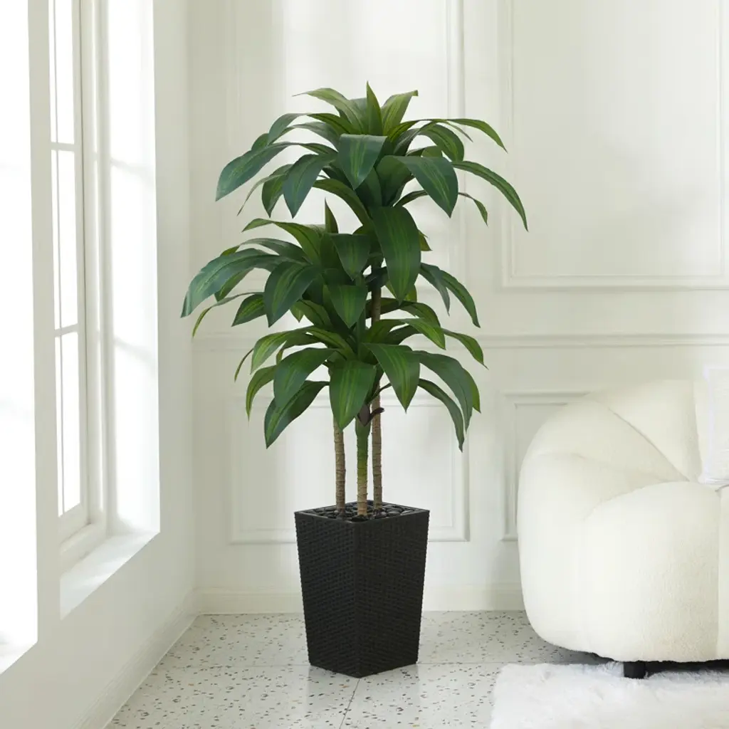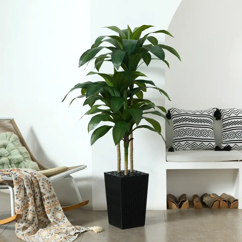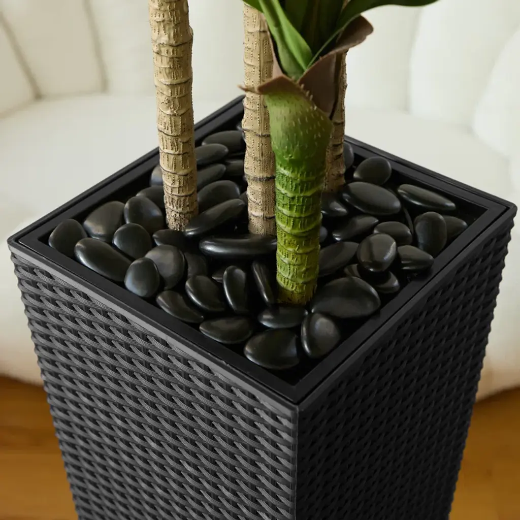With UV-resistant leaves, the faux dracaena tree thrives both indoors and outdoors, bringing lush greenery to any space, whether in your living room, patio, or entryway decor. The large, stylish base is sturdy and elegant, ensuring it’s the perfect fit for any decor—no need to spend extra time or money searching for a base. Plus, a bag of pebbles is included to naturally enhance the look when added to the base, giving it a more realistic feel. Ideal for artificial plants indoor, fake plants tall, and home décor accents, this faux tree brings nature’s charm without the maintenance.