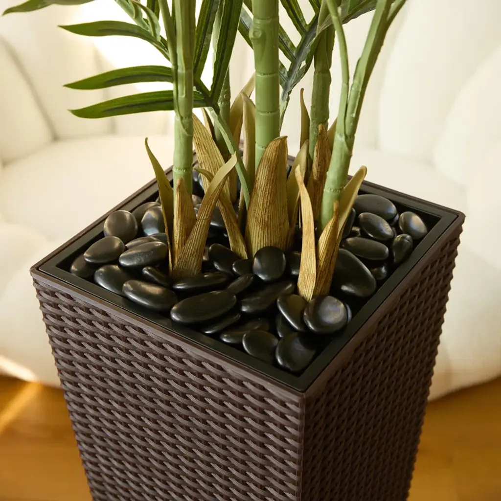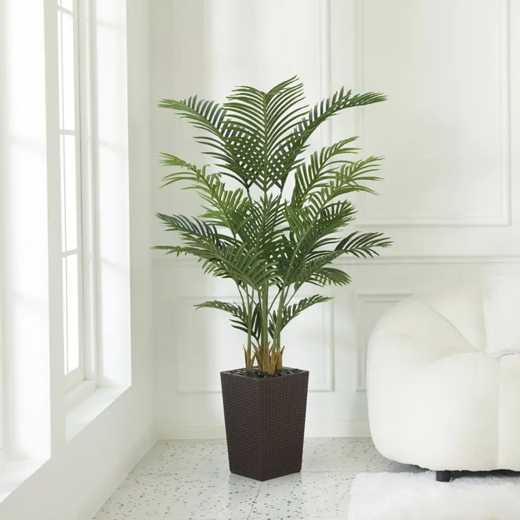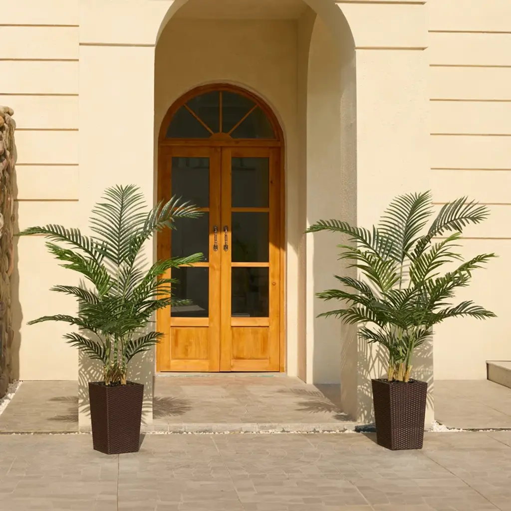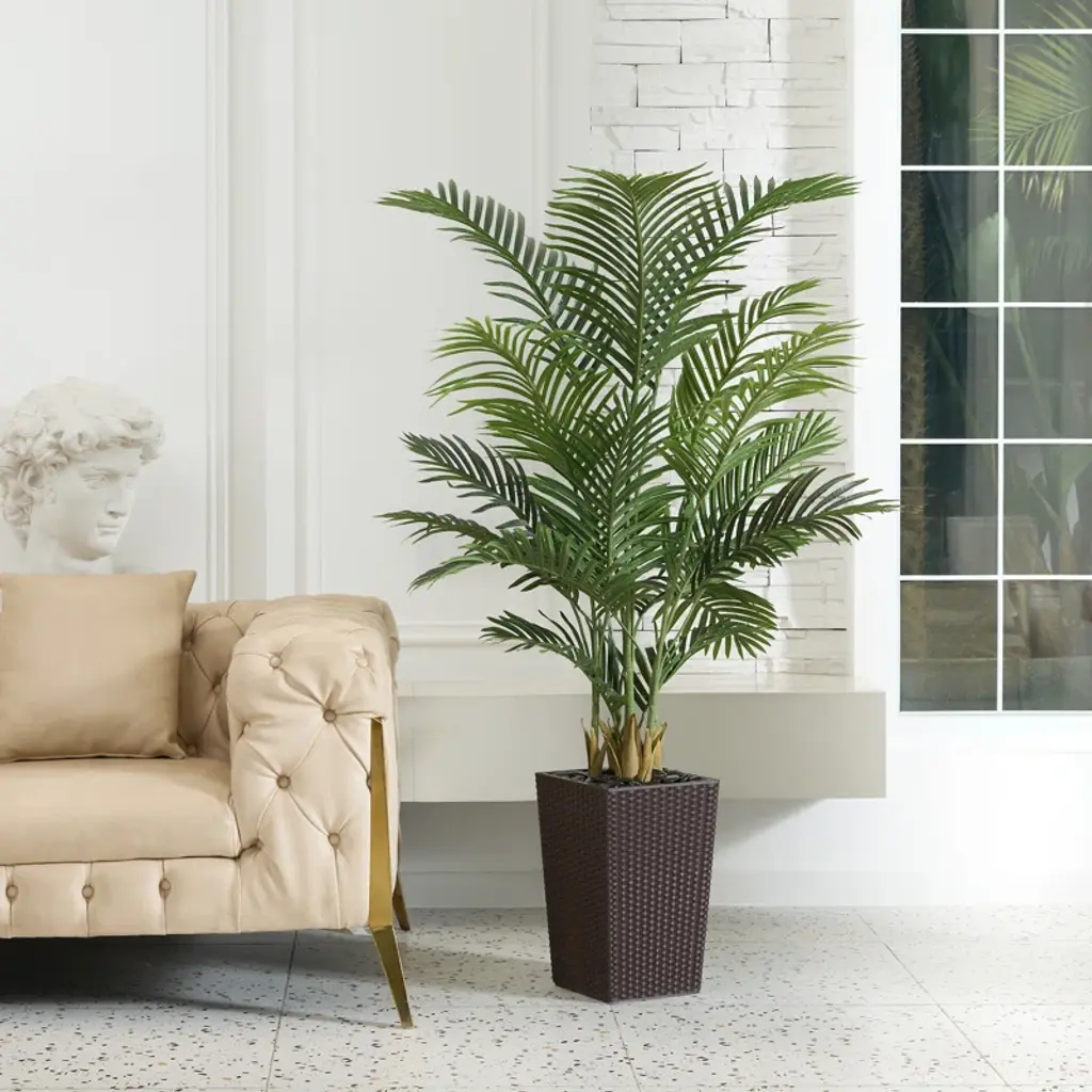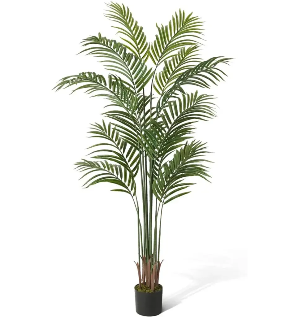 This UV-resistant artificial palm tree is a perfect blend of beauty and durability. Ideal for both indoor and outdoor spaces, it withstands the sun without fading, making it an excellent choice for your patio decor, living room, or entryway decor. The adjustable green PE leaves bring a touch of nature to your home, while the included pebbles enhance the base’s natural look. No need to hunt for a pot—this faux palm tree comes with a large, sturdy decorative base in black, white, or brown. Whether it’s for bedroom decor or office plants, this artificial tree is a low-maintenance way to add vibrant greenery to any room.
