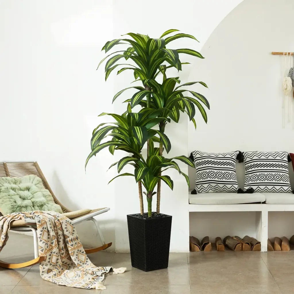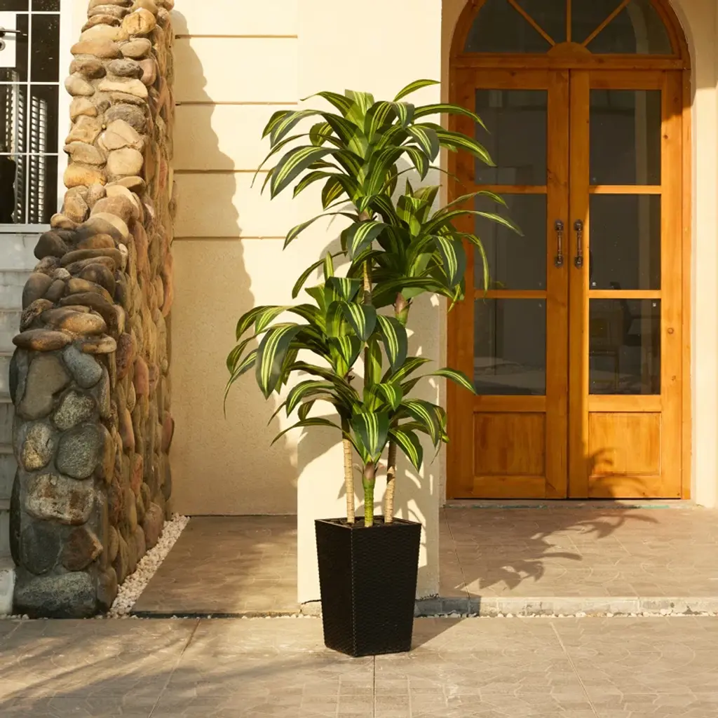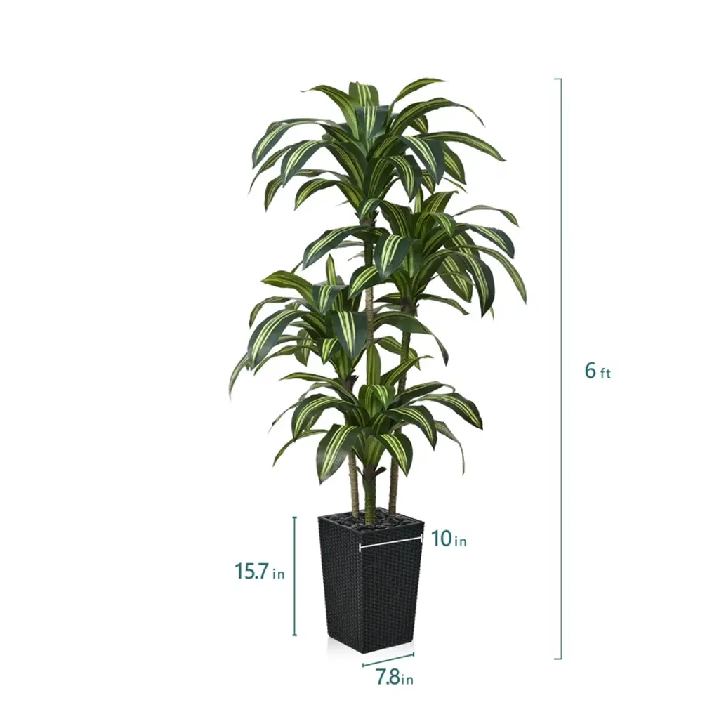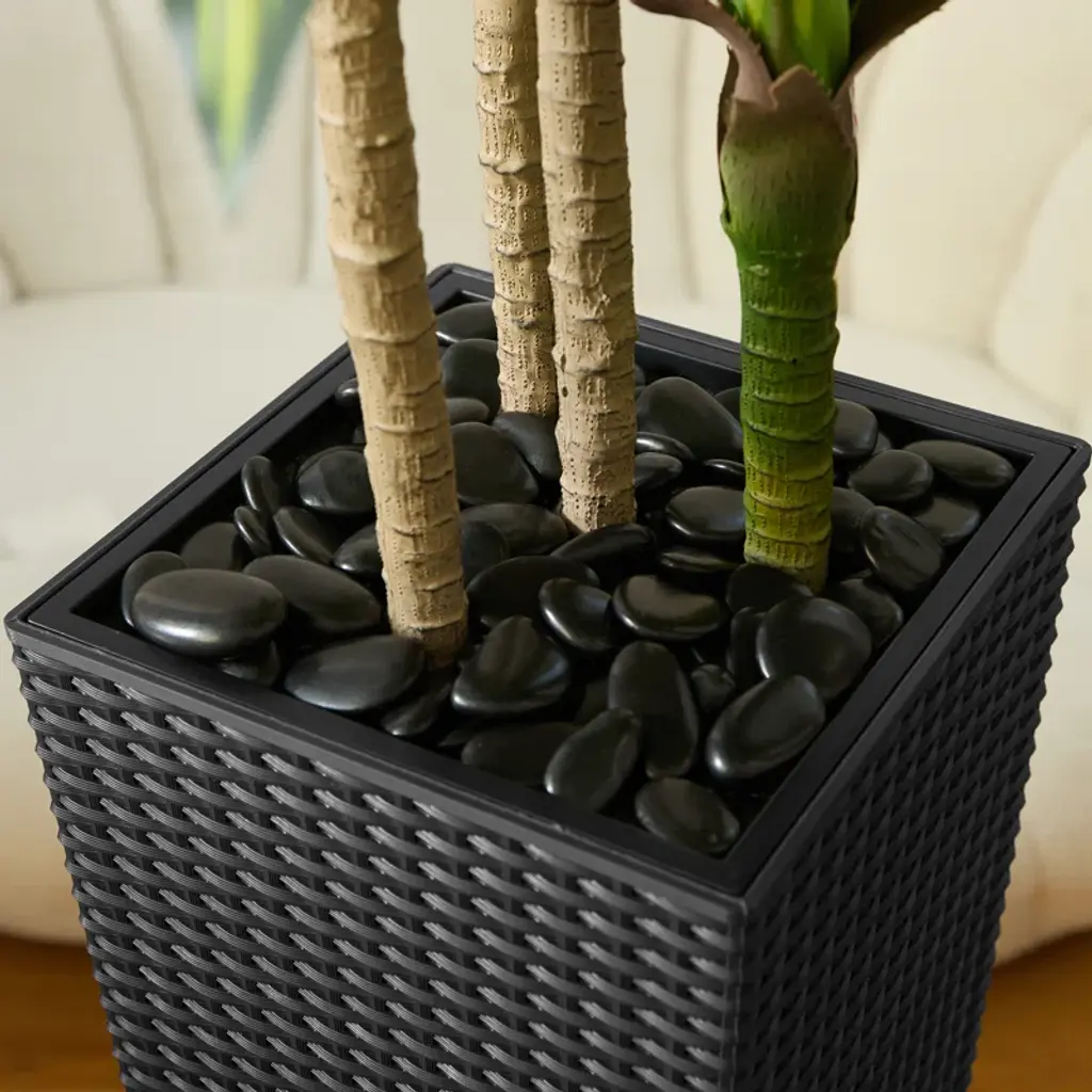 Bring a touch of nature to your home or garden with this faux dracaena tree. Designed with UV-resistant leaves, it flourishes both indoors and outdoors, adding greenery to your living room decor, patio, or entryway decor. The elegant, oversized base provides stability and style, sparing you the hassle of hunting for an additional planter. To enhance its natural look, we’ve included a bag of pebbles, perfect for creating a more authentic appearance. Whether you’re decorating your home office, dining room decor, or farmhouse bedroom decor, this artificial plant offers beauty and simplicity without the upkeep.