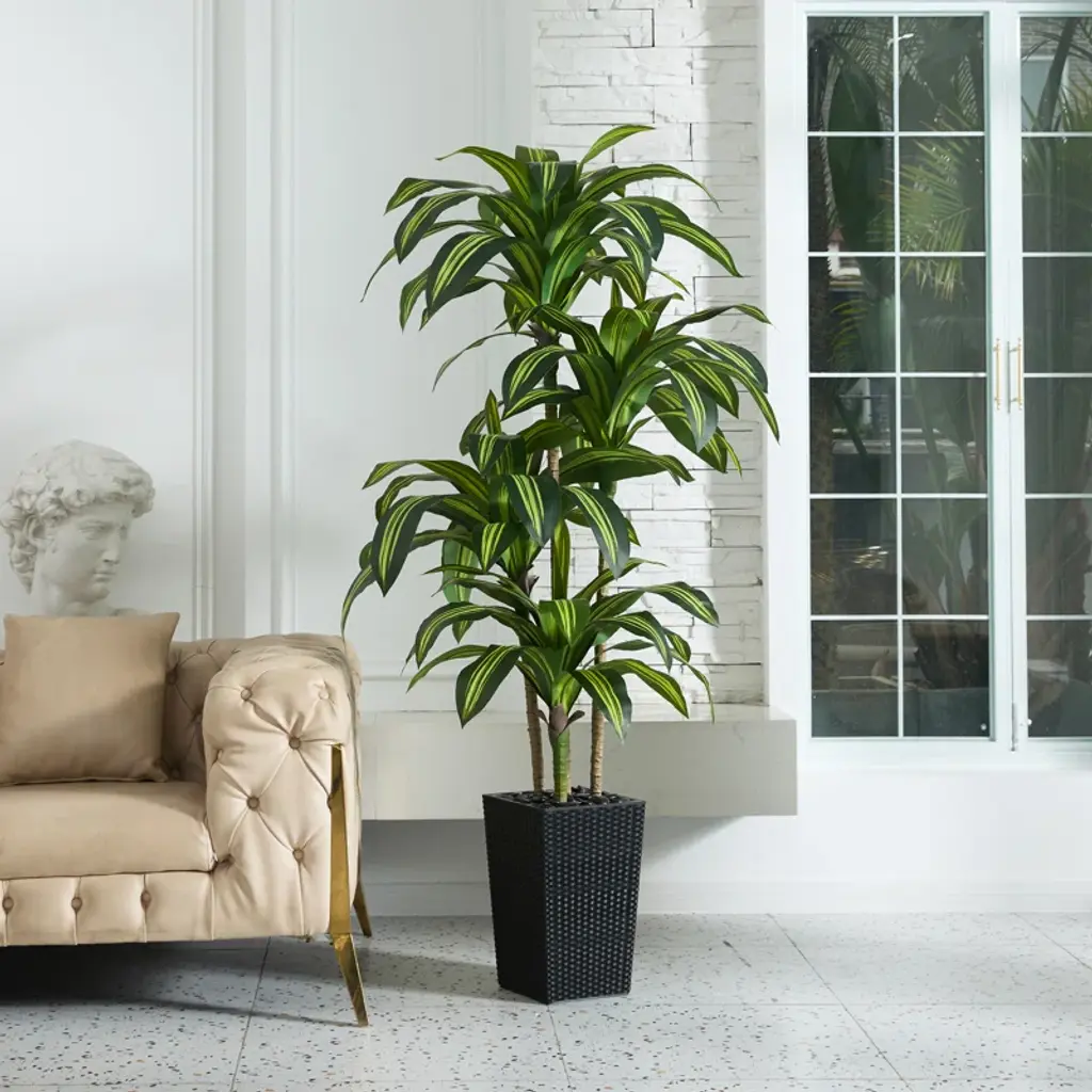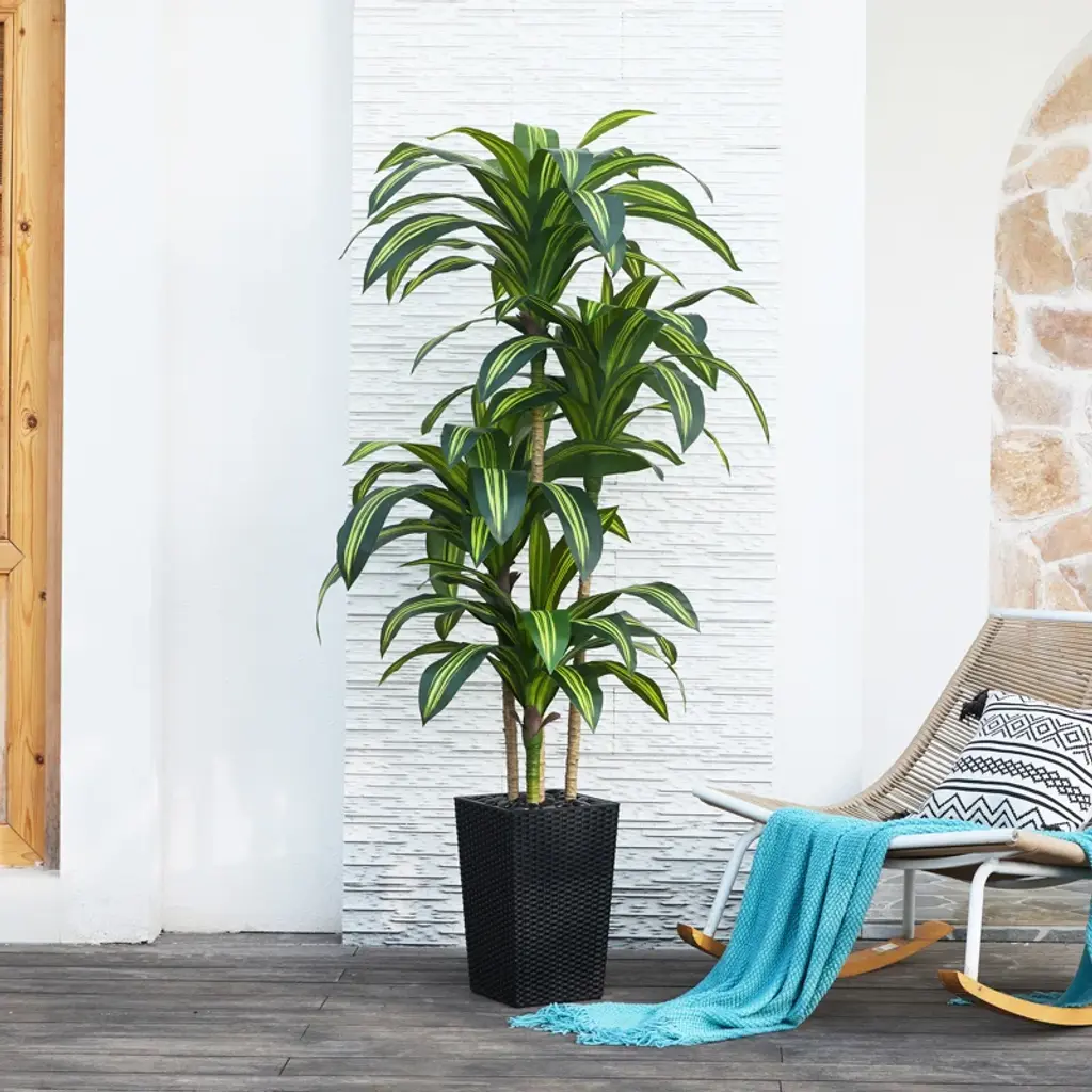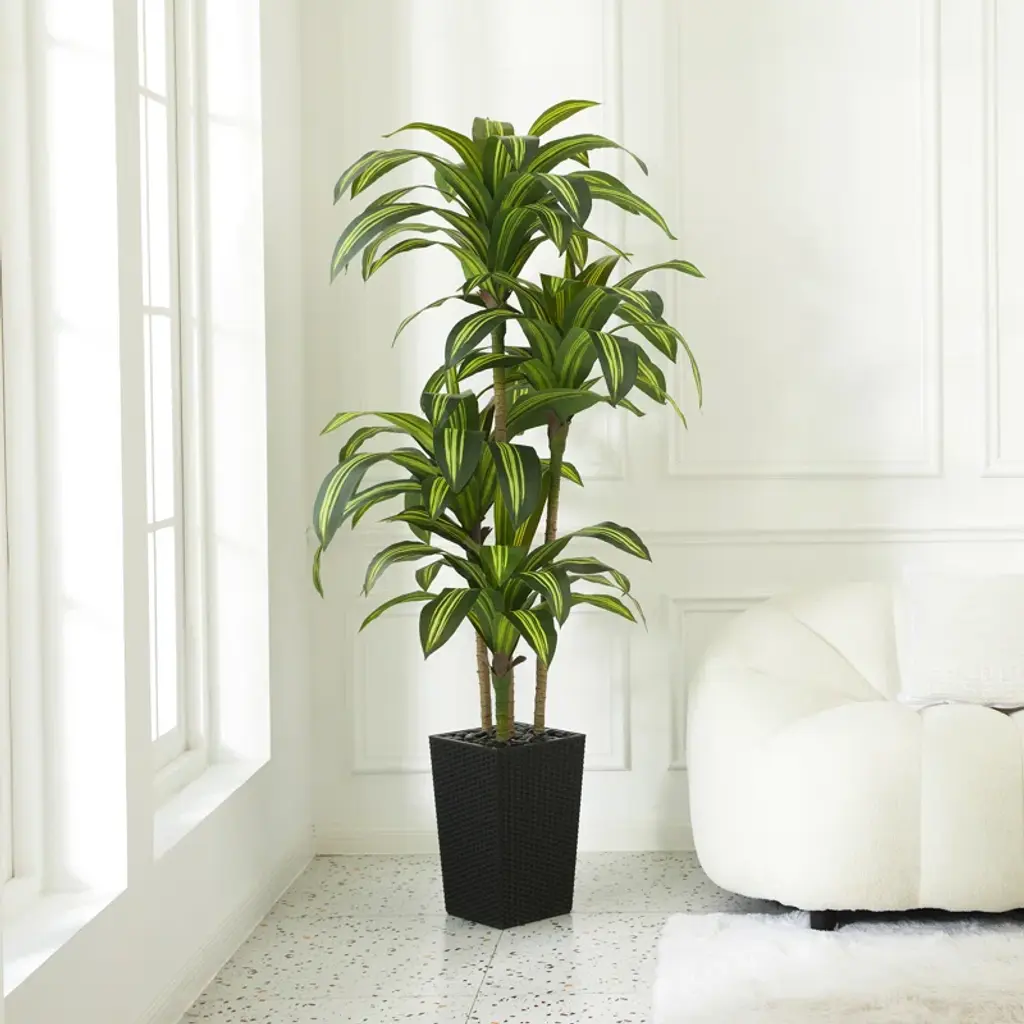 Adcock Uv Resistant Artificial Yellow Dracaena Tree, Faux Tree With Large Base For Indoor Outdoor