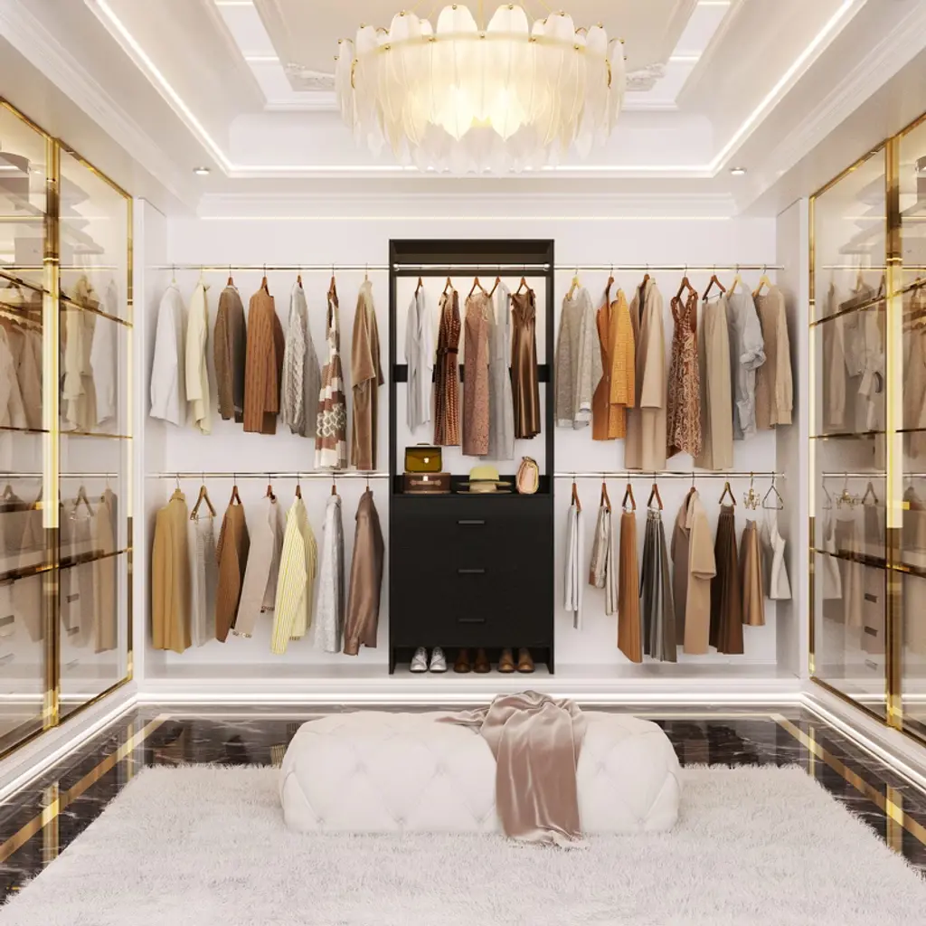 Are you tired of cramped closets and tangled hangers? Our closet system is designed for effortless organization and style. With a spacious, all-hanging design, it gives you easy access to your favorite outfits while showcasing your fashion in a chic way. The heavy-duty system meets all your wardrobe needs. With ample space, enjoy easy access to everything you love, embracing a beautifully organized closet.
