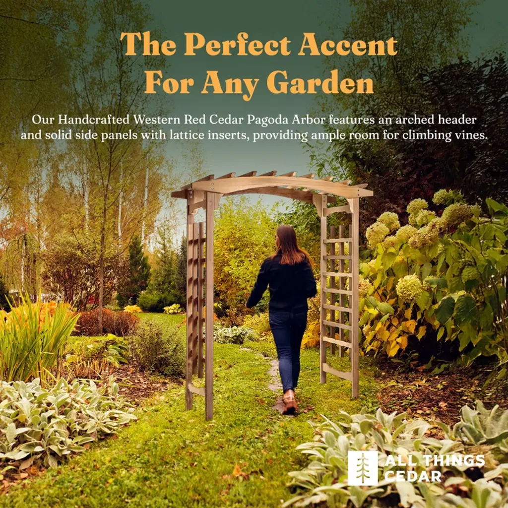 All Things Cedar 6-foot Pagoda Arbor Garden Arch Trellis For Climbing Plants, , Transform Garden Or Patio Spaces, Made From Premium Western Red Cedar
