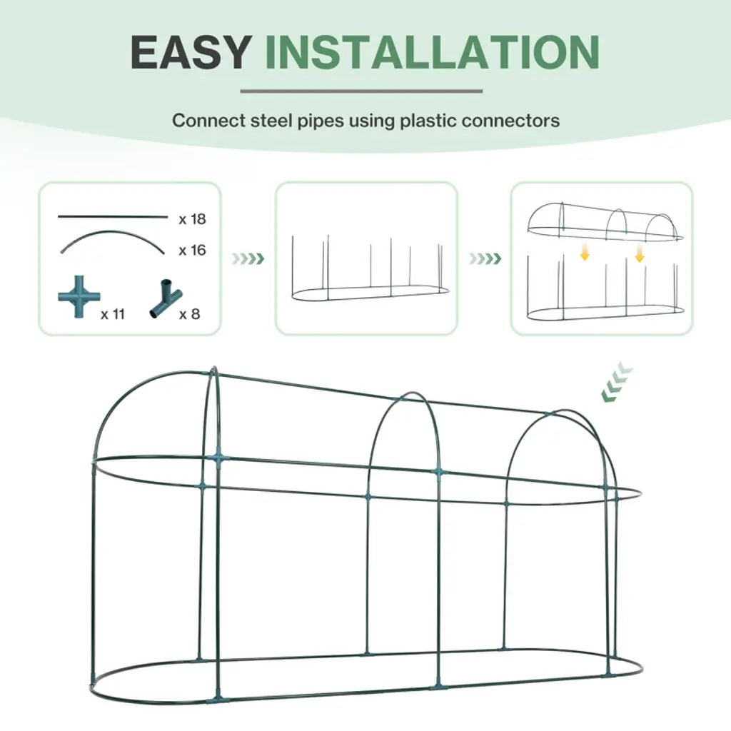 Aoodor 8'x4'x6' /10'x3'x5'/12'x4'x6' Crop Cage Plant Protection Tent features rust-resistant steel tubing and reinforced plastic connectors for stability. Its 4mm breathable mesh keeps out insects and animals while accepting sunlight and rain.The 5-inch extended rim ensures windproof stability and prevents tipping.
