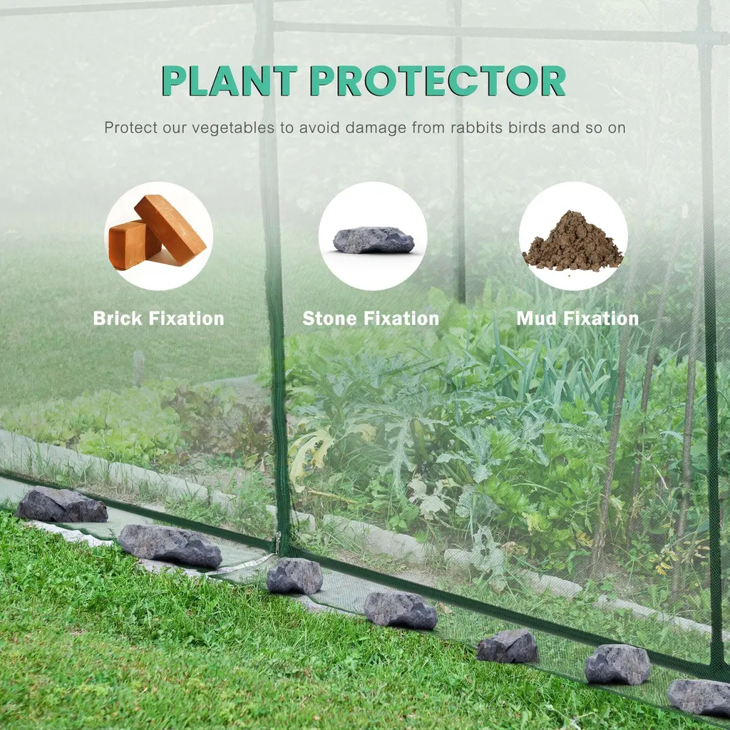 Spacious Design: Sized at 12 FT. x 4 FT. x 6 FT, Aoodor crop cages are both larger and sturdier, featuring a convenient zippered door for easy access during care and harvesting. Versatile Protection: Built with quality netting and frames, BPS cages shield crops, vegetables, and plants from birds and other intruders, safeguarding your hard-earned harvest. Sturdy and Durable: Crafted from high-quality steel pipe, the frame resists rust, stays stable, and remains unyielding over time. Fade-resistant and reusable for years of dependable use. Multipurpose Placement: Perfect for your garden, the BPS Crop Cage creates a clean planting area, making it convenient to care for and protect your thriving vegetable plants. Easy Assembly: Effortlessly set up the BPS Crop Cage with included hardware and instructions. For comprehensive protection, consider adding extra ties to secure the bottom cover effectively.