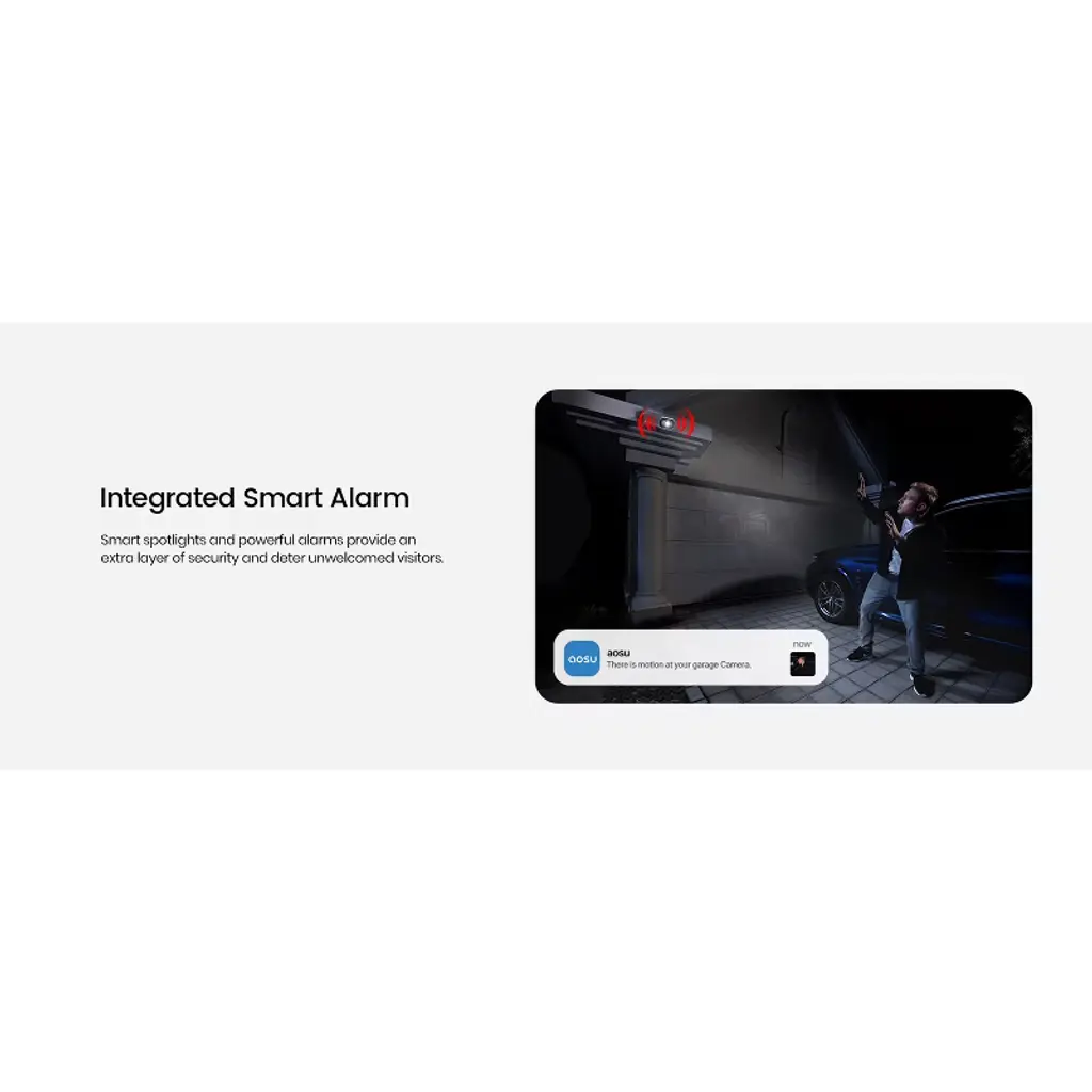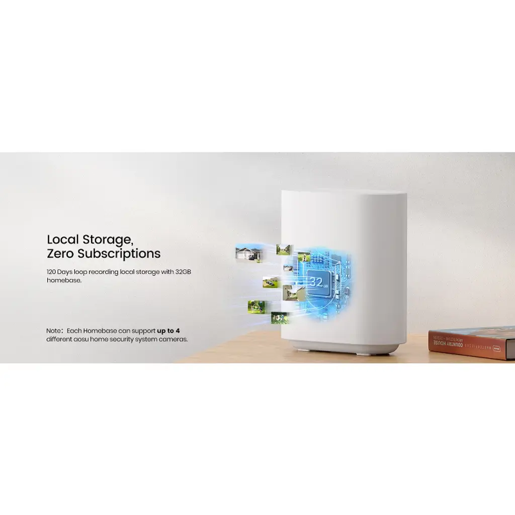 Family safety is aosu's top priority. We're dedicated to protecting what matters most to you by offering smart security solutions that combine simplicity with cutting-edge technology. Experience complete home coverage with the aosu 2K QHD Solar Camera Pro System. Each cameras features a 166° ultra-wide-angle lens. Capture every detail in stunning 2K resolution, and with a 6x zoom, even distant objects are brought into clear view. Intense white spotlights provide full-color imagery even in darkness, ensuring your home is secure day or night. The included HomeBase with 32 GB of local storage offers up to 4 months of loop recordings for 4 cameras, all without hidden costs or subscription fees. While an optional Cloud storage subscription is available, it's not mandatory. Enjoy secure, encrypted data and reliable connectivity provided by the HomeBase. Effortlessly monitor up to 4 live streams on your smartphone anytime, anywhere with aosu's Solar Camera Pro System. Benefit from AI-powered cross-camera tracking for intuitive and seamless playback, keeping you connected to your home at all times.