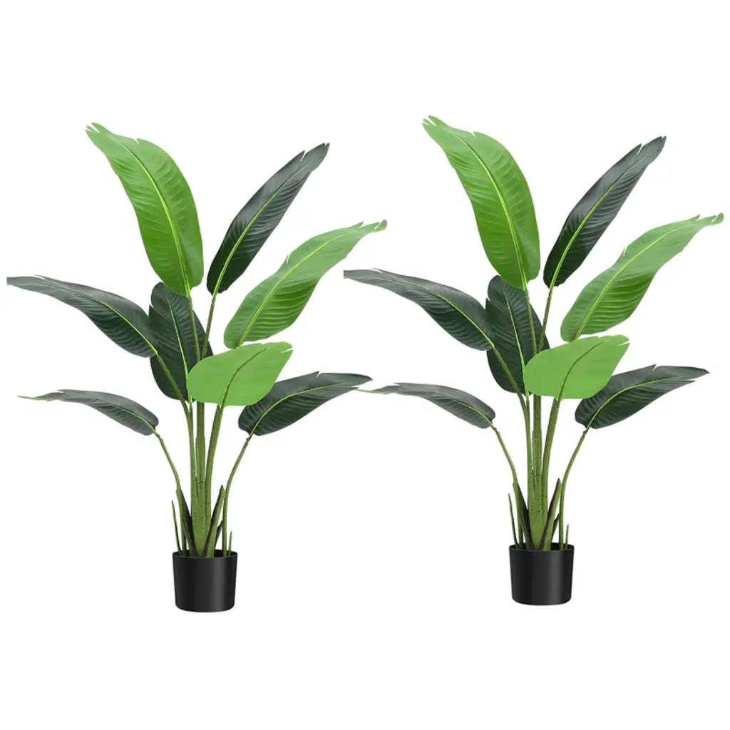 Artificial Bird Of Paradise Plant 4Ft (48 In) Fake Palm Tree Modern Decor Faux Plants Perfect Housewarming Gift With 8 Trunks Faux Leaves 2 Pack