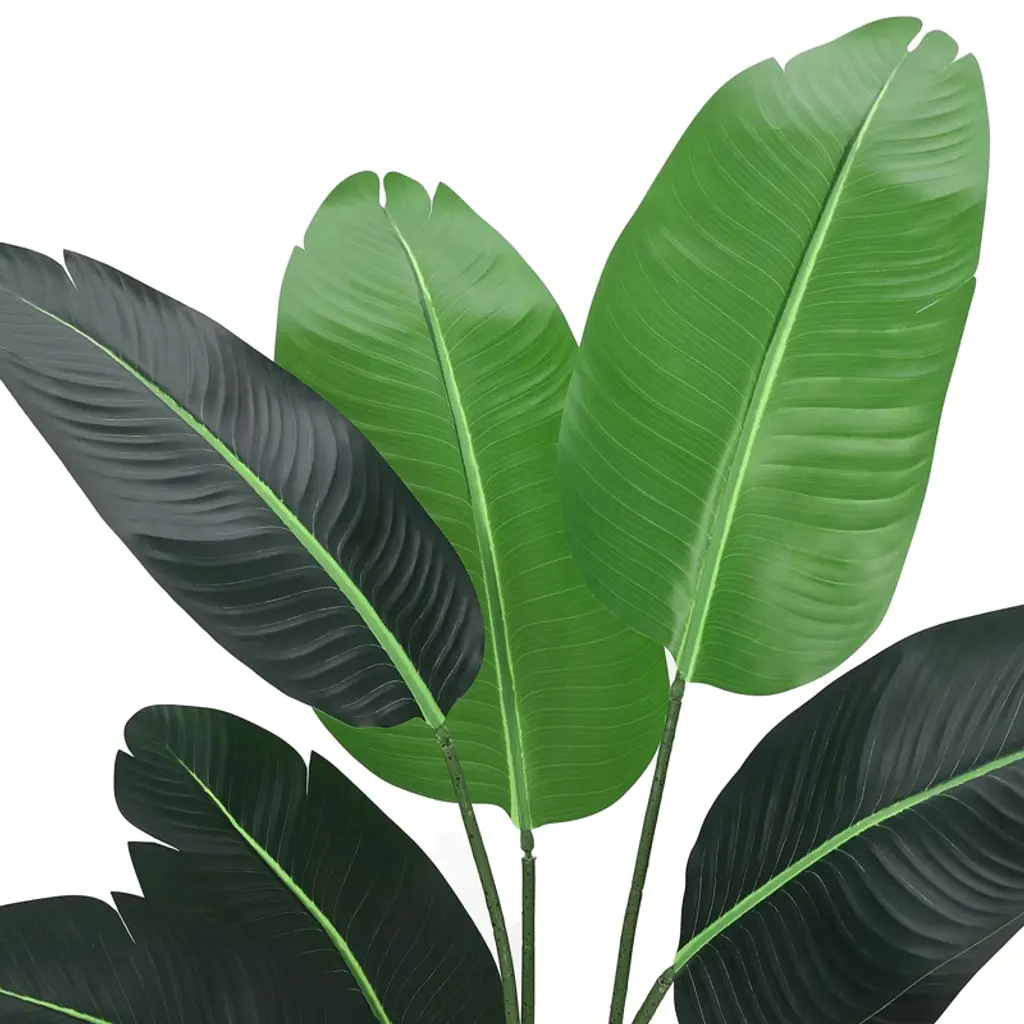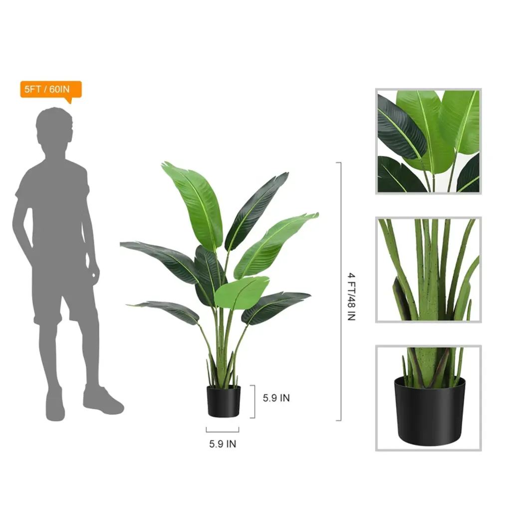 Product DescriptionBring tropical elegance to your indoor or outdoor spaces with this artificial bird of paradise plant, designed to mimic the lush foliage and striking silhouette of a natural palm. Featuring UV-resistant materials, adjustable trunks, and effortless maintenance, this faux plant offers vibrant greenery year-round, ideal for modern homes, offices, or covered patios.Key Features1. Realistic Tropical DesignEight lifelike trunks with textured surfaces and staggered heights create a natural, multi-layered appearance. High-quality plastic leaves replicate the glossy sheen, tapered shape, and deep green hues of real bird of paradise foliage.2. Weather-Resistant DurabilityUV-treated leaves resist fading and degradation from sunlight or rain, making the plant suitable for shaded outdoor areas like balconies or porches.3. Adjustable & CustomizableBendable trunks and foliage allow you to spread or angle leaves for a fuller, more organic look. Pair with the included dried moss (sold separately) to enhance the planter¡¯s natural aesthetic.4. Low-Maintenance ConvenienceRequires no watering, pruning, or soil. Wipe leaves occasionally with a damp cloth to maintain their vibrant appearance.5. Versatile Styling OptionsUse as a standalone accent in living rooms, entryways, or offices, or group with other faux plants for a tropical corner. The neutral planter blends seamlessly into modern, bohemian, or coastal decor themes.Product SpecificationsMaterial: UV-resistant plastic leaves, weighted plastic planterColor: Deep green foliage, brown textured trunksAssembly: Minimal setup required; add dried moss for finishingPerfect as a housewarming gift or permanent decor piece, this artificial bird of paradise plant combines lifelike beauty with practical design, offering a vibrant, hassle-free addition to any space.