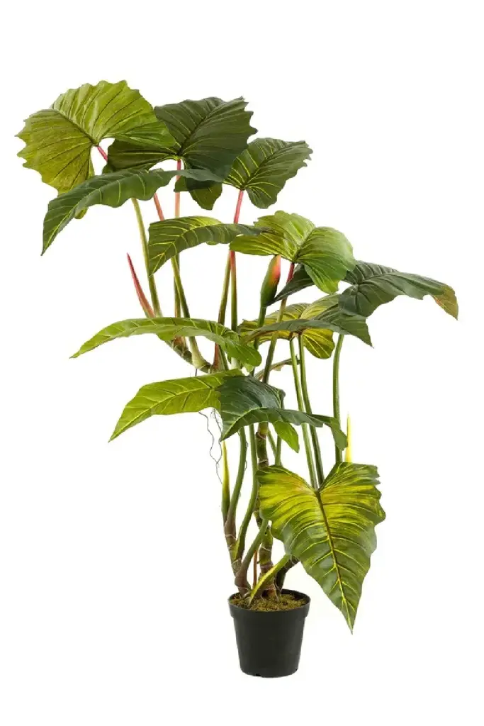 Artificial Elephant Ears Plant Set (2) | Emerald Colocasia On Trunk
