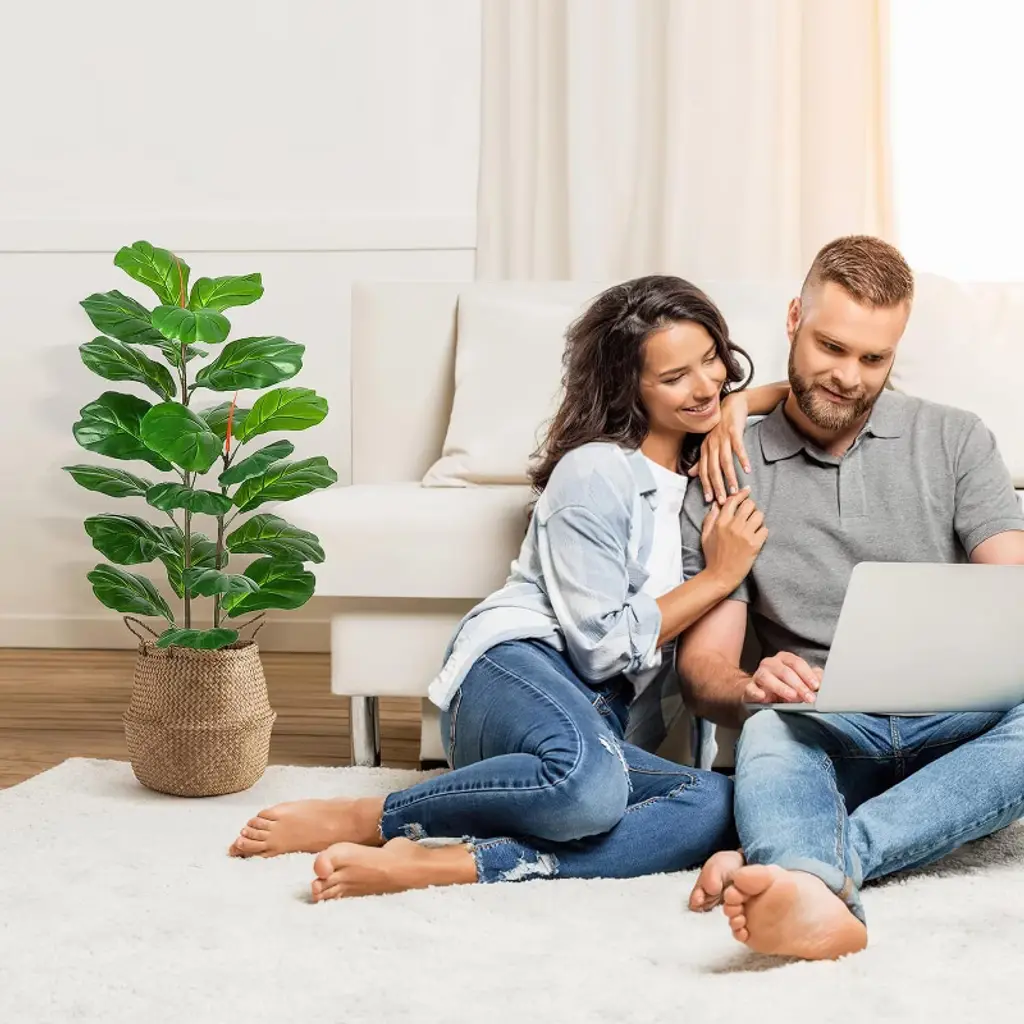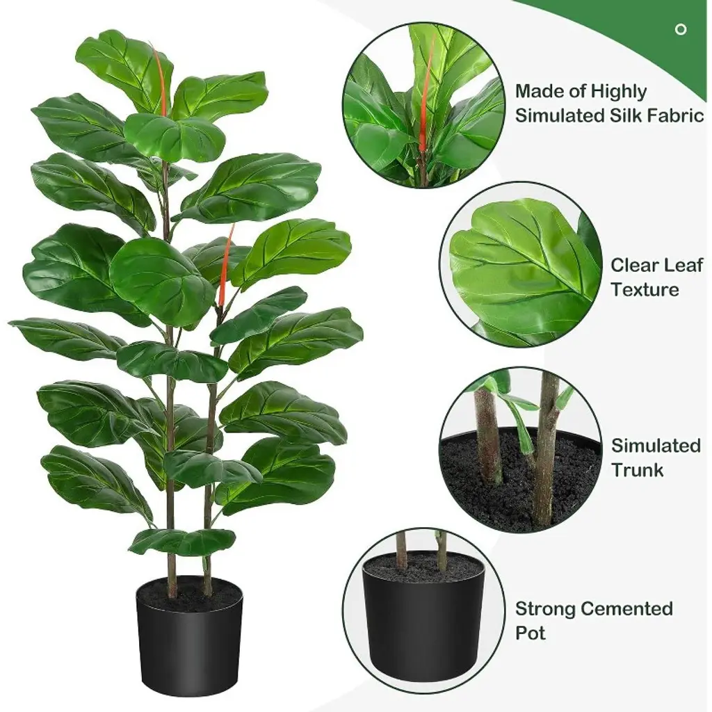 Artificial Fiddle Leaf Fig Tree Tropical Plant With Natural Wood Trunk Fiddle Leaf Fig Plant Artificial Tree For Home Decor Indoor Outdoor Office