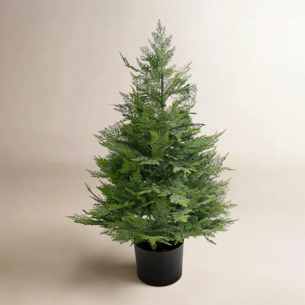 An evergreen is all you need for the holidays. This artificial down swept norfolk pine tree, delivers a classic look without being too much. Inspired by the lush, forests, this tiered symmetrical silhouette, looks great with or without decorations, it can stand on its own. Sparse, yet full, it's the ultimate game changer for when you want a trendy, modern ambirance. Crafted from high-quality materials, you'll notice the attention to detail in its natural look and real touch branches. Feel free to bend the branches to fit in your space. Standing 3-Ft from a nursery pot, DIY and add to a planter of your choice. Decorate with other accents from the norfolk collection for a cohesive, upscale look.