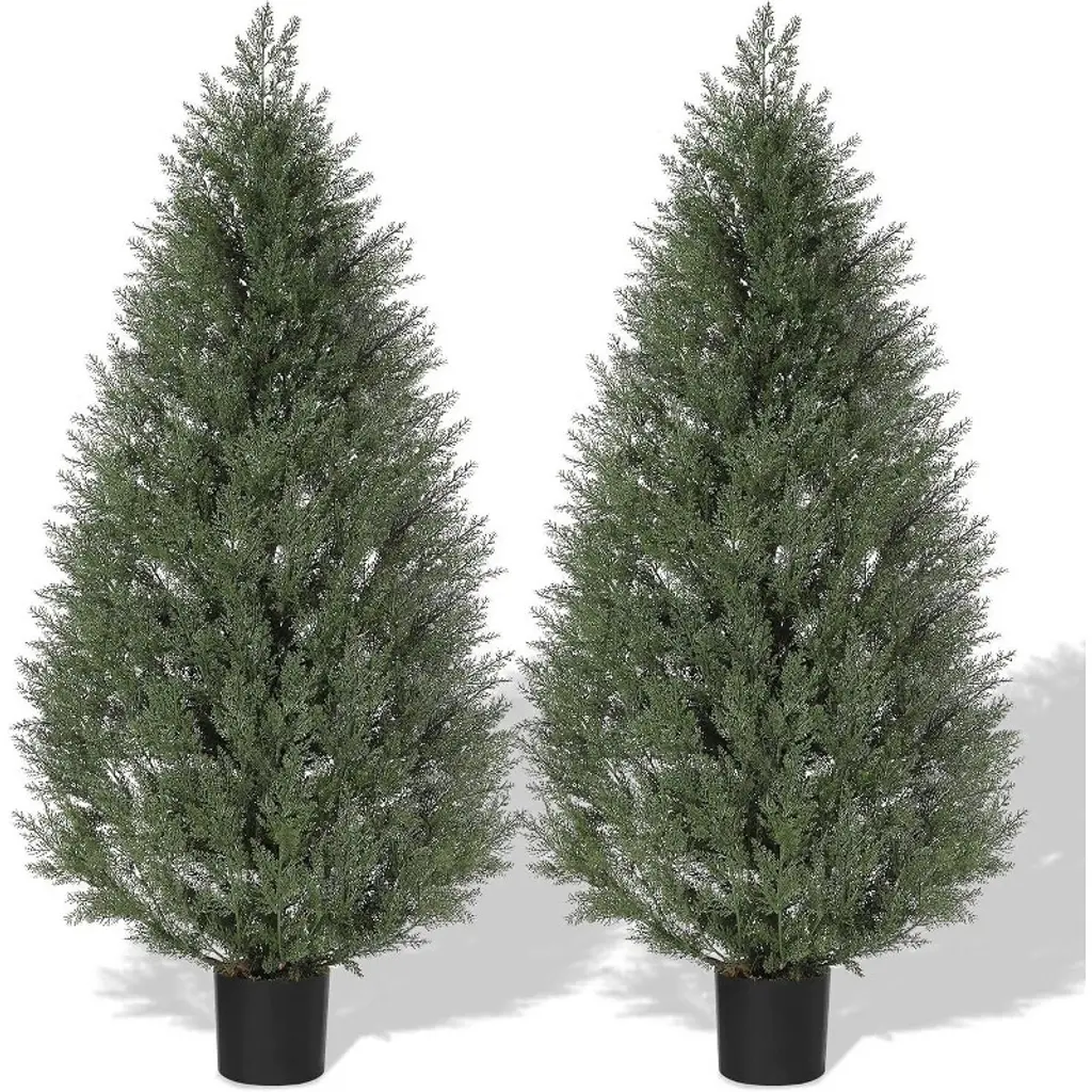 Artificial Topiary Cedar Tower Tree Fake Cedar Potted Plants (Set Of 2)