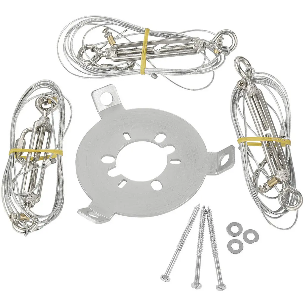 Craftmade Guide Wire System is the perfect choice to stabilize your outdoor rated ceiling fan in windy conditions. Wet rated and adjustable with up to 96" of cable, the system bracket attaches to the ceiling fan yoke at the top of the ceiling fan motor housing and allows the three adjustable cables to be attached to the fan and securely mounted to the ceiling.