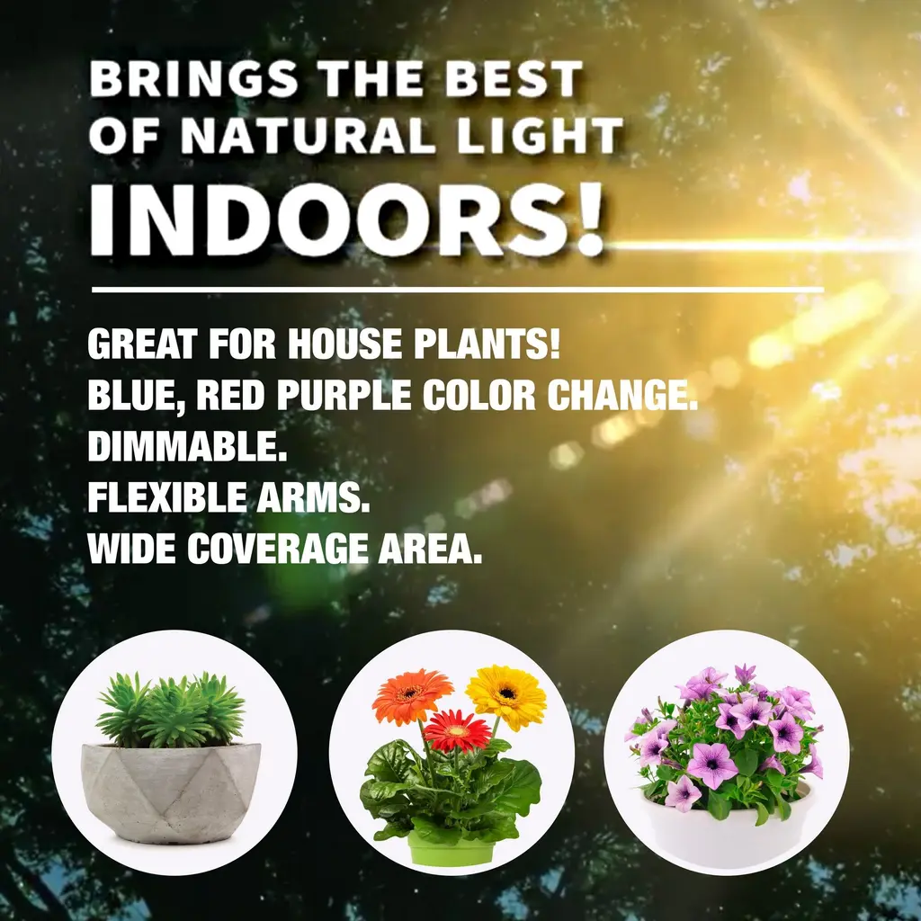 The Bell + Howell Bionic Grow Light for Indoor Plants features four adjustable LED light heads designed to accelerate plant growth year-round. With full-spectrum light that includes both blue light for vegetative growth and red light for flowering, it's ideal for growing flowers, vegetables, and herbs indoors. This grow light is equipped with an adjustable timer (3, 6, or 9 hours) and comes with a clamp and stand mount for versatile setup options. Whether used in a greenhouse, kitchen, or home garden, this light provides optimal UV exposure to keep your plants thriving. Key Features: Full Spectrum LED Light: Equipped with blue light for vegetative growth and red light for flowering, this grow light accelerates plant development, ensuring optimal growth conditions year-round. Adjustable Head Design: Each of the light heads is flexible and adjustable, allowing you to target specific plants or areas for the best light exposure. Versatile Mounting Options: The light includes both a stand and a clamp mount, giving you multiple ways to set it up in your home, kitchen, or greenhouse for maximum convenience. Built-in Adjustable Timer: With 3, 6, and 9-hour timer settings, this grow light allows you to automate your plant's lighting cycle, ensuring consistent exposure without constant monitoring. Indoor Garden Essential: Perfect for growing herbs, vegetables, and flowers indoors, this greenhouse grow light is ideal for any home gardener looking to cultivate fresh plants all year long.