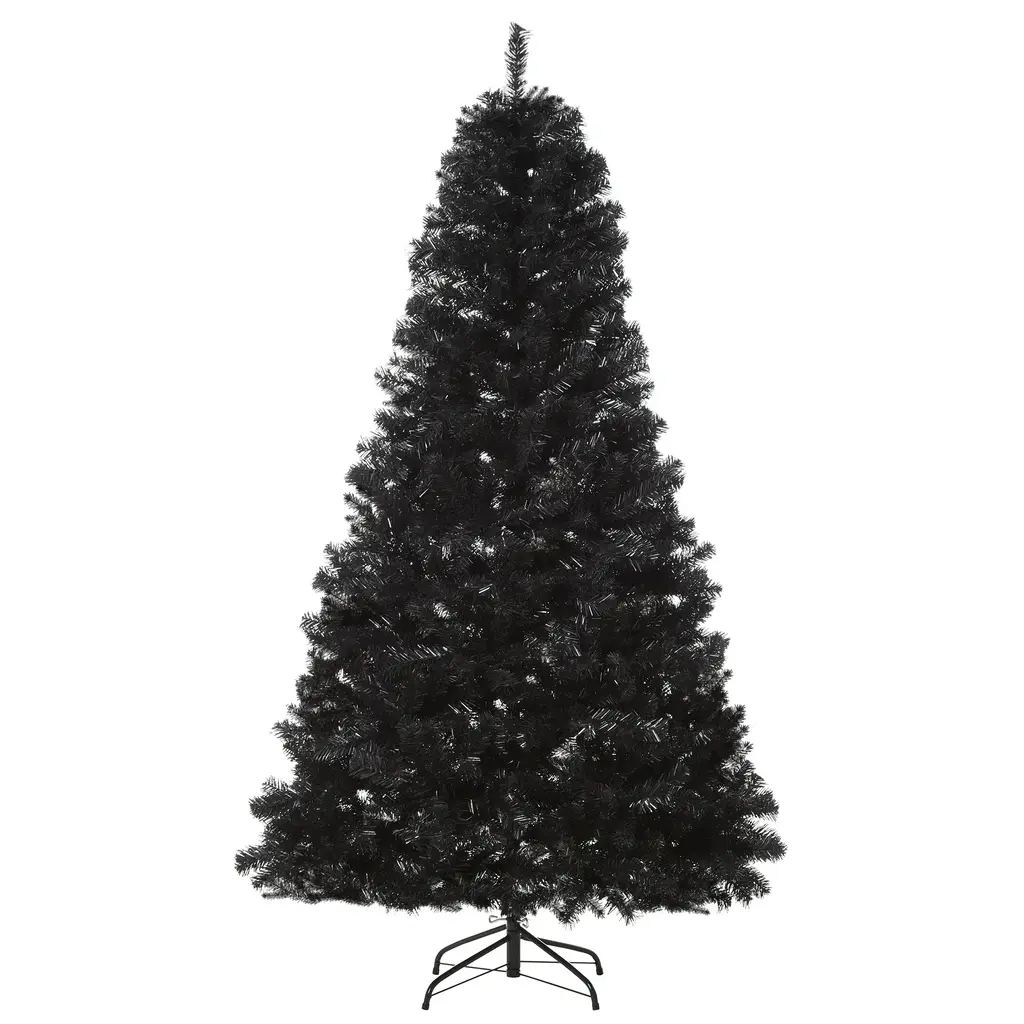 Product Overview: This Artificial Christmas Tree features a realistic black color and unlit design, allowing for endless decorating possibilities. Available in 7.5ft and 9ft sizes, it comes with a sleek, auto-open design for easy assembly. The tree is perfect for home or office spaces, adding a modern touch to your holiday décor. The flame-retardant branches provide peace of mind, while the sturdy steel base ensures stability during the holiday season. This tree is the perfect backdrop for all your favorite ornaments and lights.Specifications: Product Features: Notes: Be sure to fluff the branches for a fuller, more realistic appearance. After the holidays, store the tree in a cool, dry place to preserve its condition.