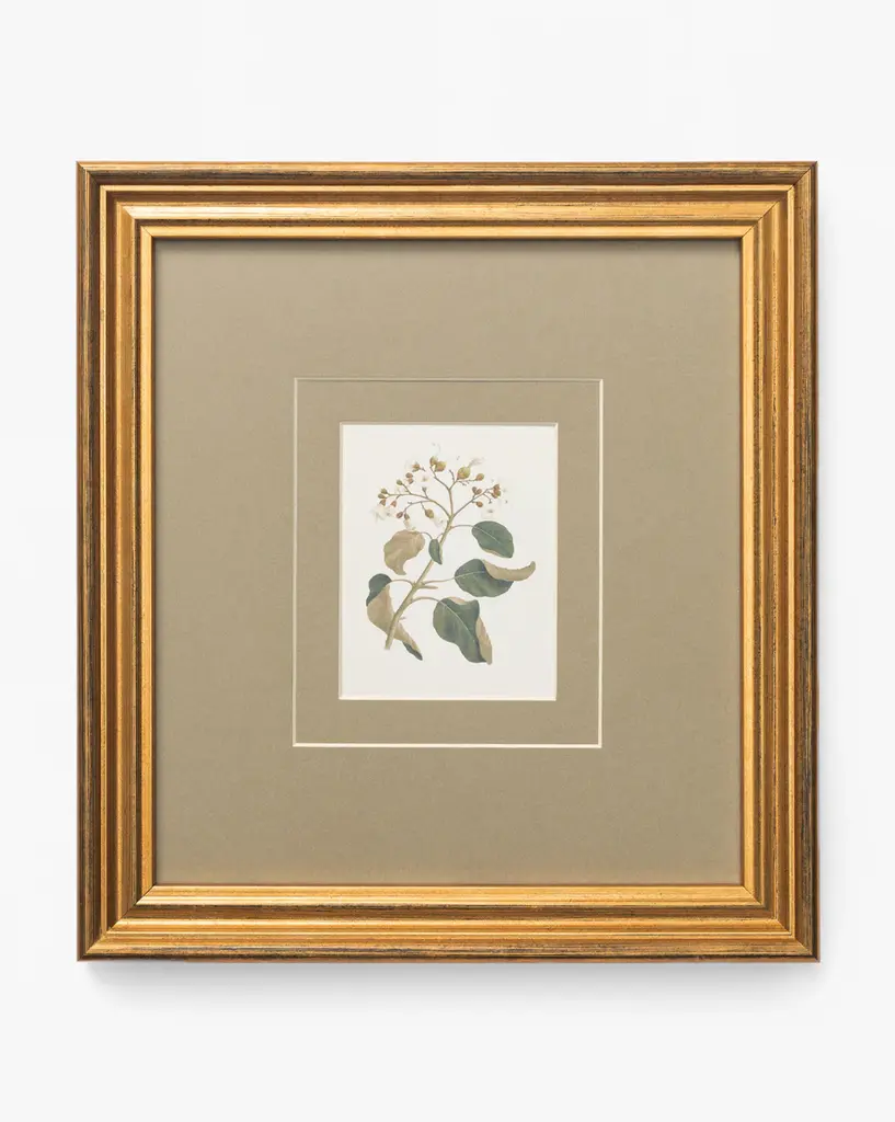 Featuring beautiful petite florals presented in an antique gold and black frame, Blossoming Branch brings a vintage-inspired, earthy elegance to your walls. This giclee print on paper is paired with beige double mats, creating a captivating contrast that adds dimension to the piece.
